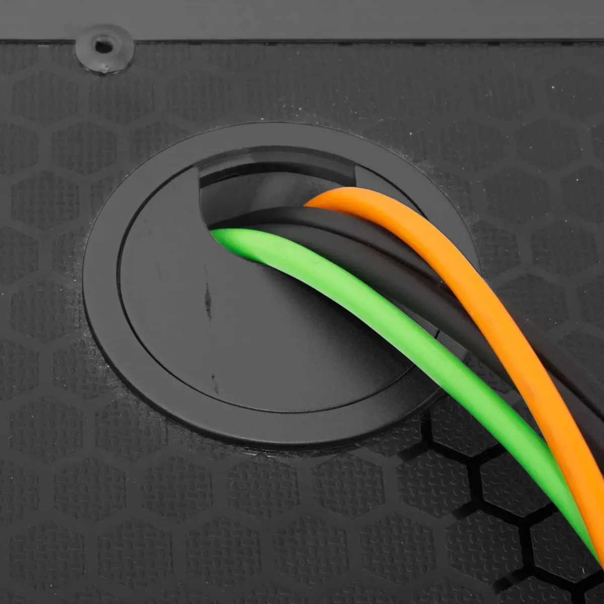 • Protección : Herrajes con recubrimiento de polvo y anodizados, Construcción robusta, Laminado en acabado blanco/negro con patrón de nido de abeja/hexagonal "Stage Grip" ;