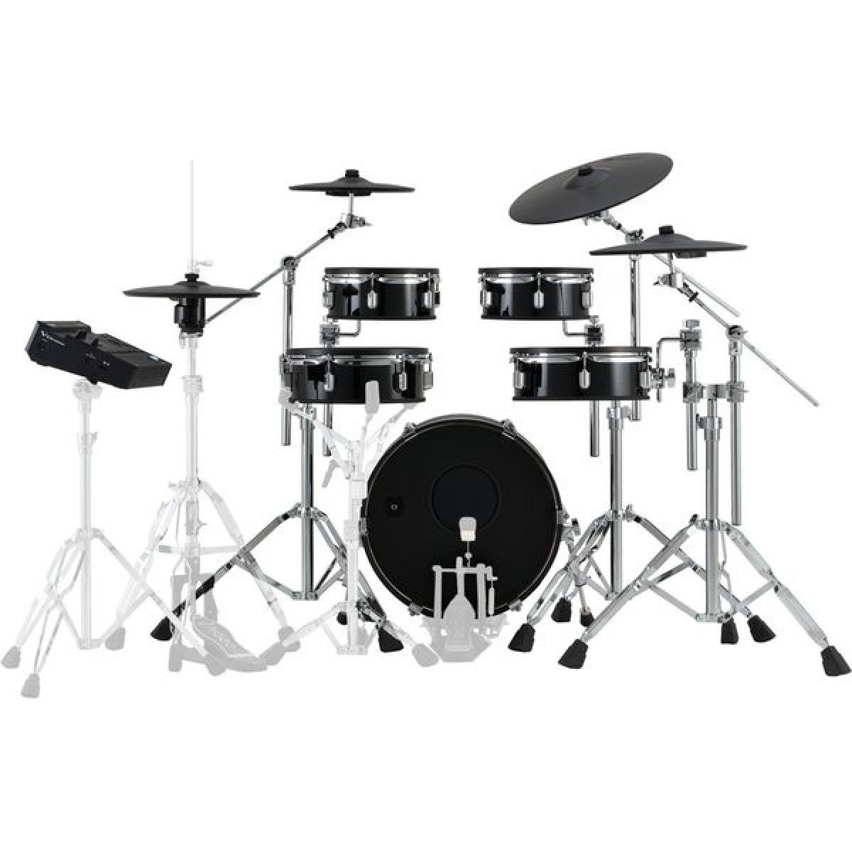 • Kit V-Drums Acoustic Design con cascos de madera de poca profundidad y bombo de tamaño completo.