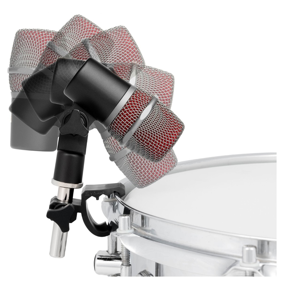 El soporte giratorio que se incluye con el V Bear le permite inclinar el ajuste del micrófono con una precisión extrema. Puede apuntar a cualquier parte del parche para cambiar el color del sonido. Excepcional sonido en el escenario o en el estudio, en un espacio muy reducido.