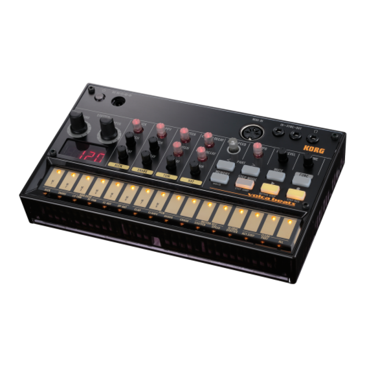 Volca Beats le ofrece seis de los sonidos que hacen que le hacen brillar más claramente - Arranque, Caja, Tambor alto, Tambor de piso, Platillo charles cerrado y abierto. Creado con referencia a las máquinas de ritmo clásico e indispensable para la música de baile, estos nuevos sonidos poderosos sólo pueden ser llevados ante la justicia en una máquina analógica.
