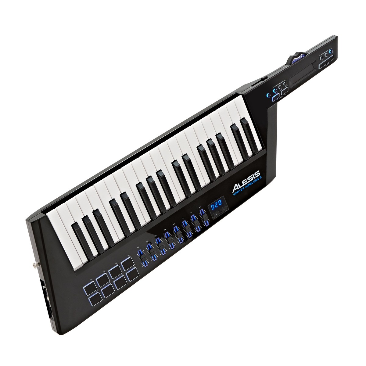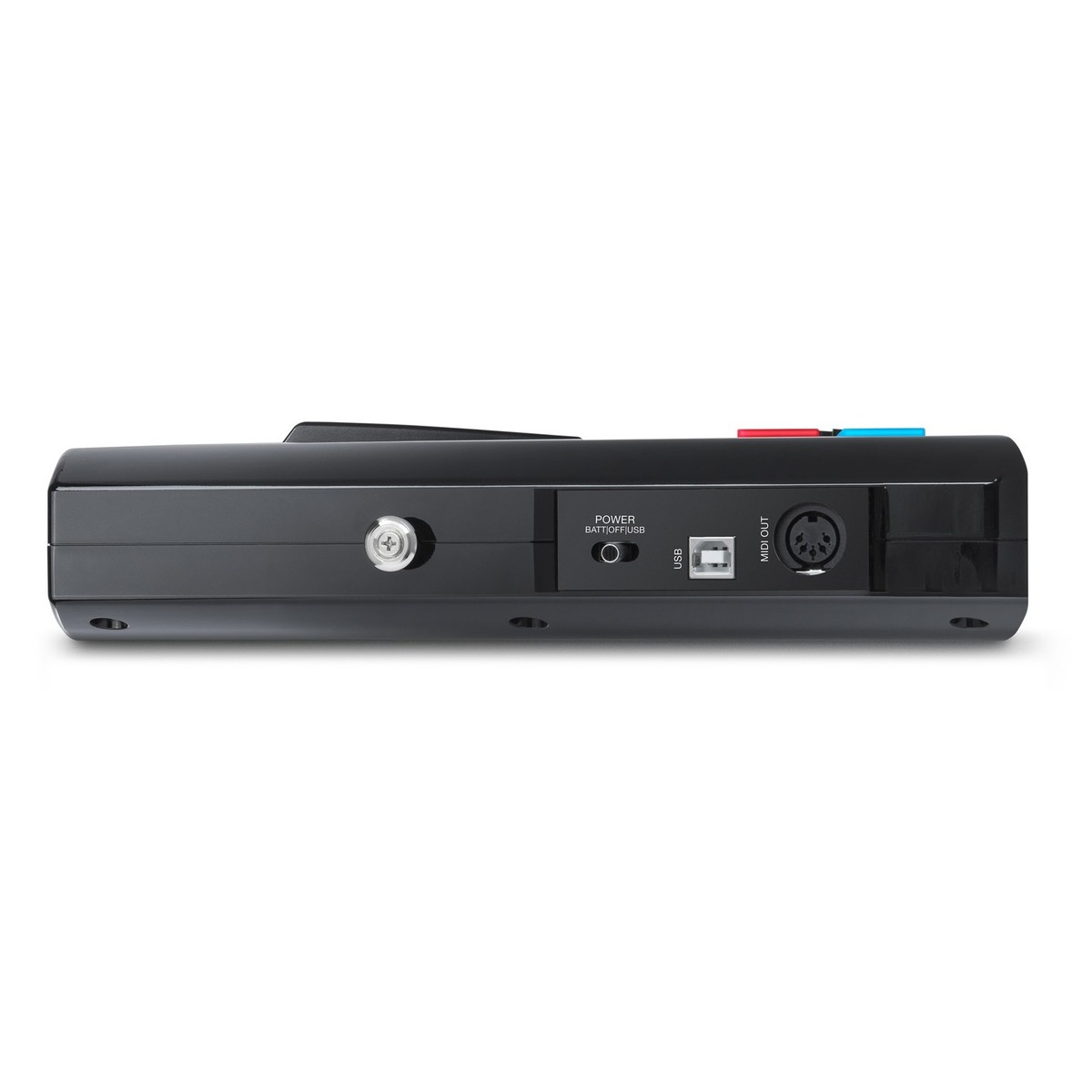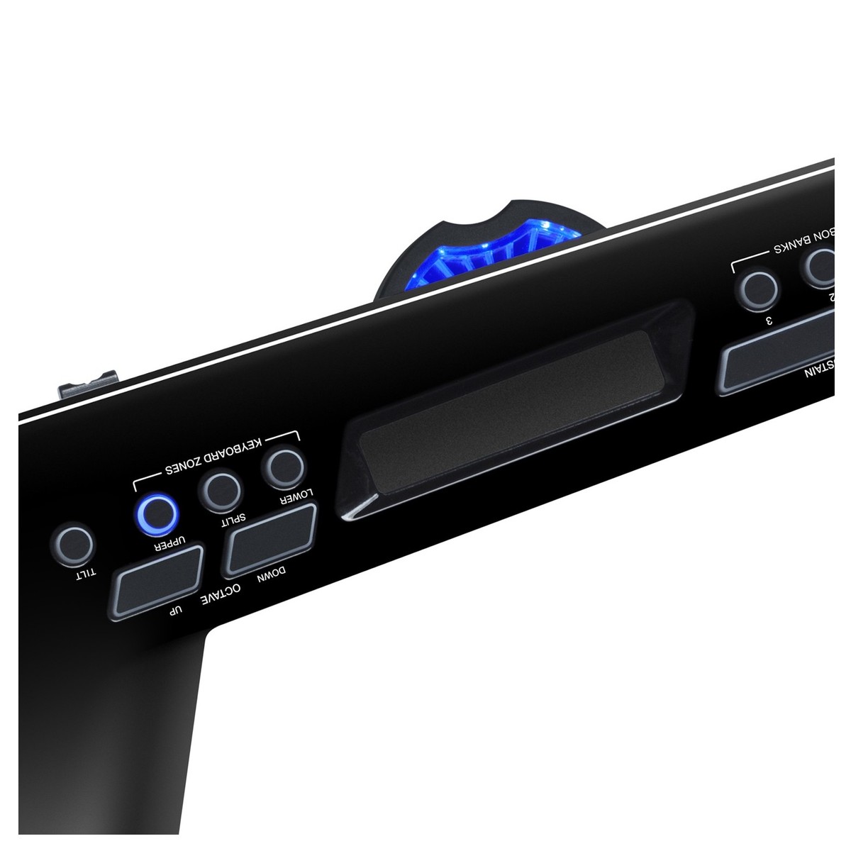 Volúmenes más grandes u otros parámetros de instrumentos virtuales Control de rendimiento del sensor de inclinación con asignación MIDI incorporada con botón de encendido / apagado Control deslizante de volumen controlado con el pulgar y rueda de curva de sintonización reversible en el cuello Botones de control, retención, zona, control y tira táctil MIDI designables octava del cuello Receptor USB incluido que crea una conexión inalámbrica a cualquier Mac o PC, o la mayoría de los teclados con un host USB Puede funcionar con baterías para usar con módulos MIDI y sintetizadores de hardware (4 baterías AA no incluidas)