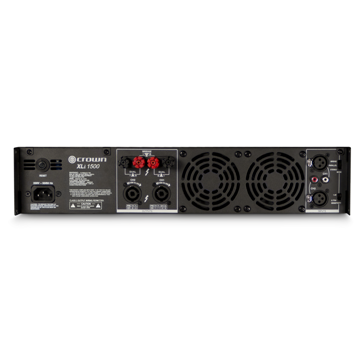 El Crown El amplificador de potencia estéreo XLi1500 puede asumir cualquier live situación de sonido. Con entradas XLR y RCA, junto con Speakon y salidas de enlace, se puede atender casi cualquier combinación de fuente y destino de la señal. Incluso se puede variar la sensibilidad de entrada a 0,755V o 1,4V. También puede aprovechar los modos estéreo, paralelo y mono puenteado.