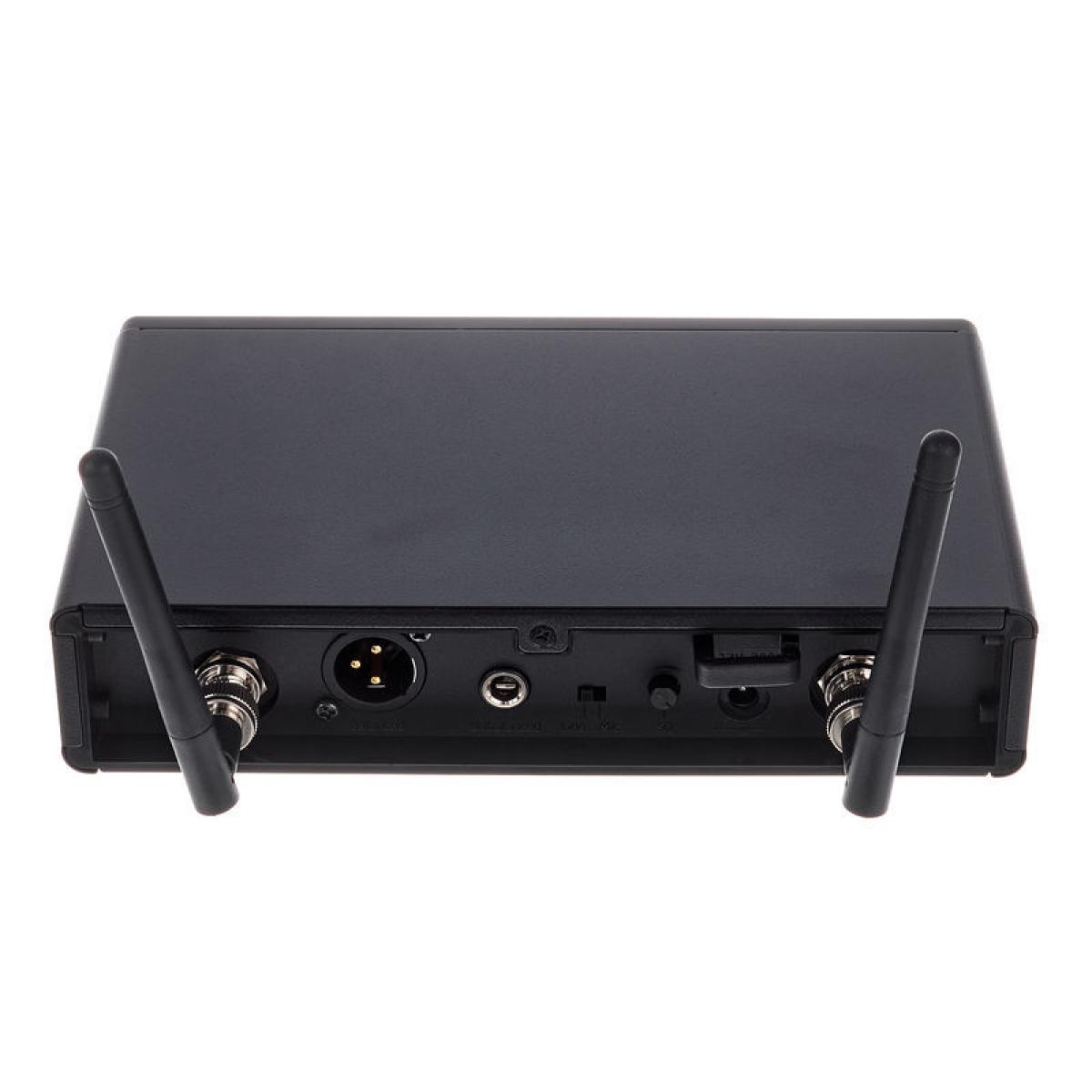 Verdadera diversidad Con carcasa de metal Cápsula dinámica E835 Patrón polar: Cardioide Ancho de banda de 24 MHz 8 bancos de frecuencia con hasta 12 preajustes para cada uno Antenas BNC externas Sintonización automática para encontrar frecuencias libres 10 mW Potencia del transmisor Rango de frecuencia de audio: 50 - 16,000 Hz Salida XLR y jack Silenciador ajustable Rango de frecuencia conmutable por línea / micrófono Banda A: 548 - 572 MHz