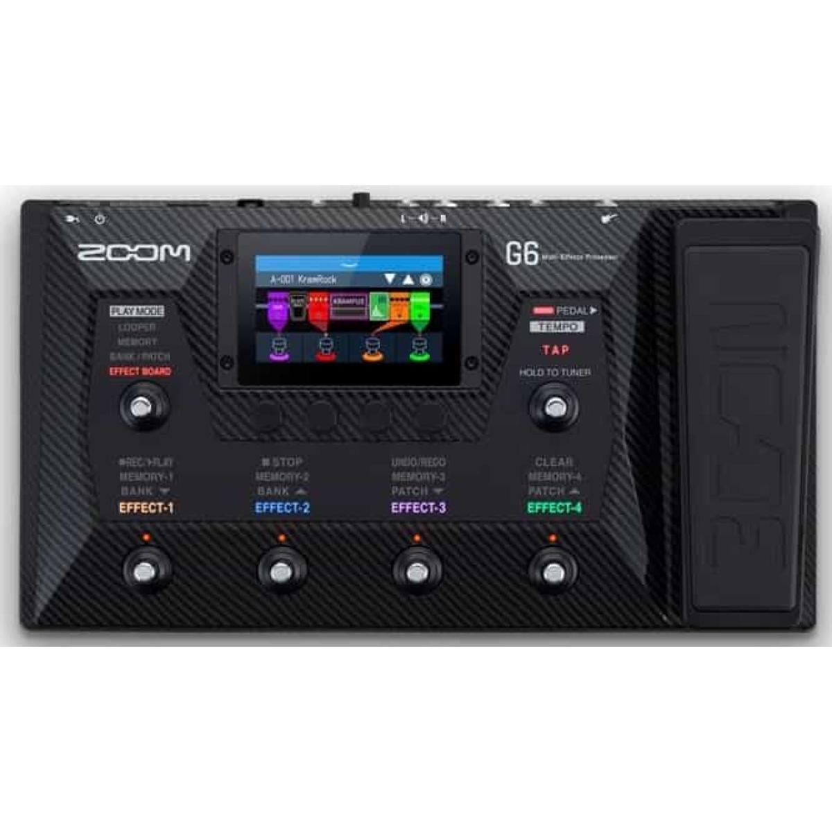Entre estos efectos se encuentran: SwellVibe, un efecto de vibrato que solo entra en acción después de tocar la nota PolyShift, que combina cualidades de chorus y pitch-shifting para crear un efecto etéreo a lo largo de dos octavas, y Geronimo, que triplica la señal para crear texturas más ricas al tocar. Zoom incluso se las ha arreglado para inventar un nuevo método de distorsión utilizando filtrado de peine en su efecto RazorDrive. Si valora la funcionalidad y la practicidad, el Zoom G6 es uno de los dispositivos con más posibilidades del mercado.
