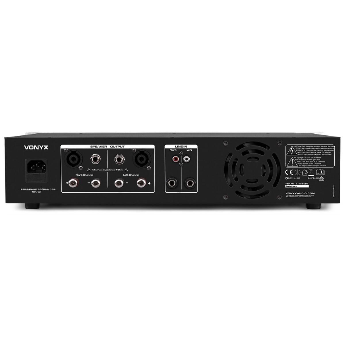 Uma série de amplificadores para uso semi-profissional. A tecnologia moderna garante um desempenho superior a longo prazo e conectar-se a este amplificador é uma tarefa simples! Como todos os amplificadores Vonyx, o VPA300 é construído para suportar pressão. Esta unidade oferece a saída de som que você precisa em um clube lotado, um palco ou no seu estúdio. Pode ser conectado a qualquer estúdio ou rack móvel padrão com facilidade! Adequado para aplicações de 19".