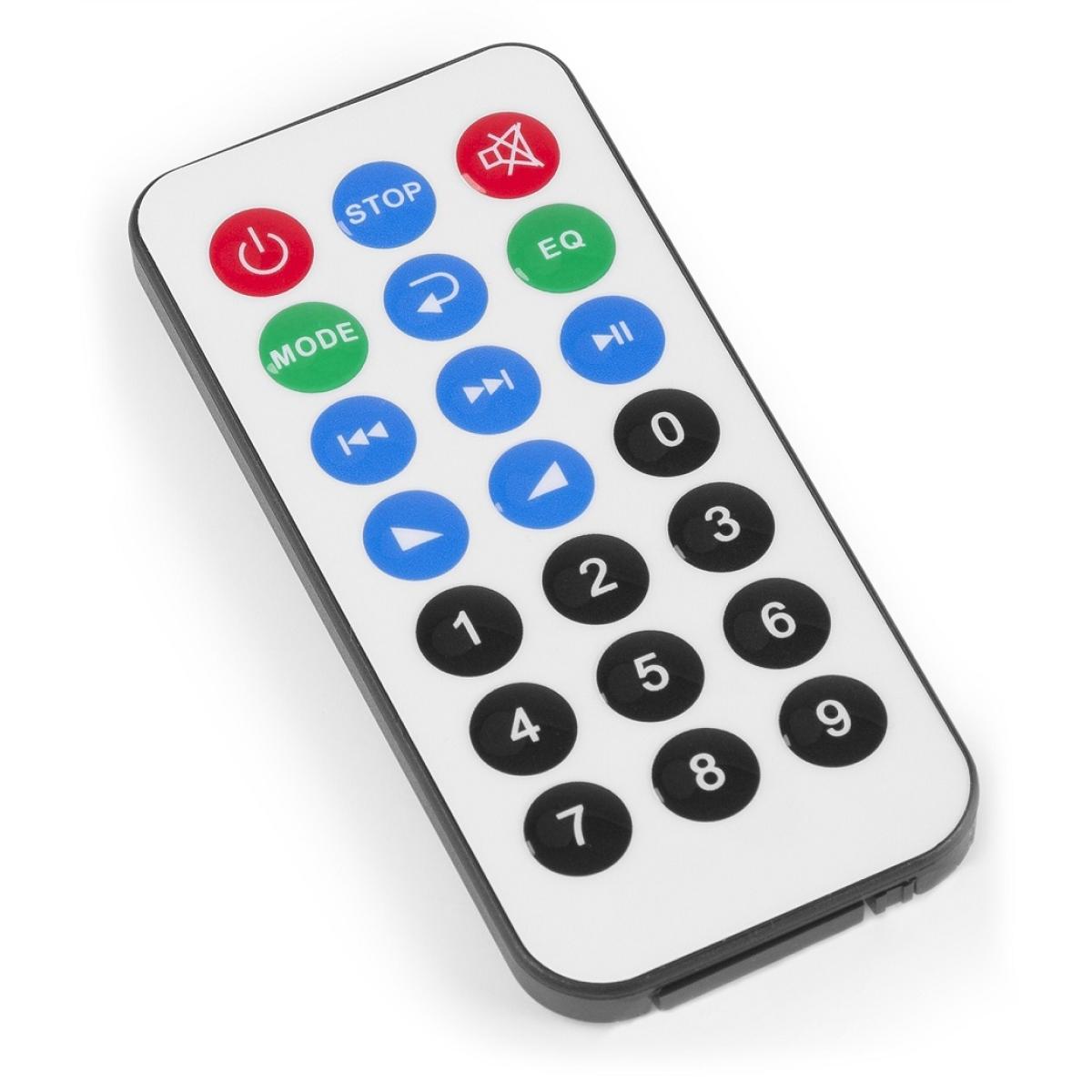 The device can be controlled by remote control, which is a device that controls an apparatus by means of radio or infrared signals.