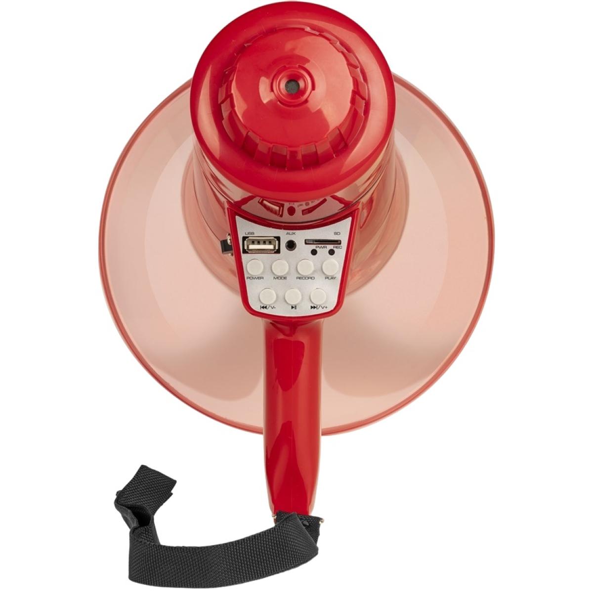 - Buzina amplificada em forma de cone portátil - Potência de pico total de 50 W - Luz LED na parte frontal - Carcaça ABS robusta - Tecnologia sem fios BT para streaming de áudio - Painel de controlo MP3 com porta USB/ranhura micro SD/entrada Aux - Função de gravação - Entrada auxiliar - Para uso interno/externo - Controlo de volume variável - Função de alerta de sirene - Chassis leve com punho de pistola ergonómico - Pega de transporte
