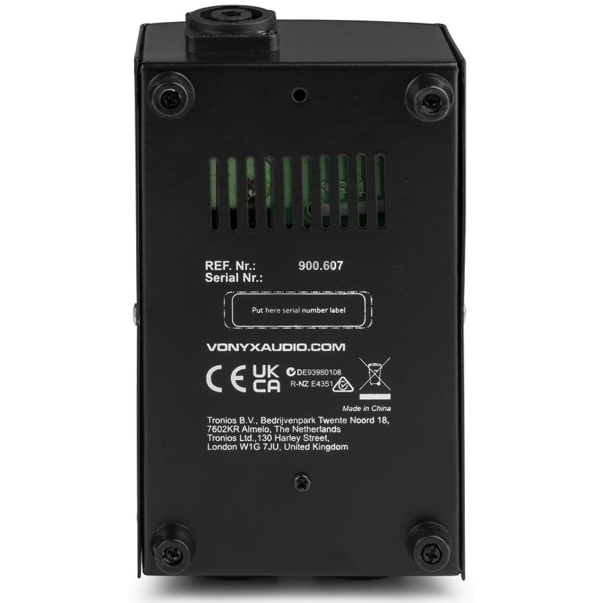 - Ligações: 1 x entrada de PA; 1 x saída subwoofer PA; 1 x saída de PA para altifalantes-satélite