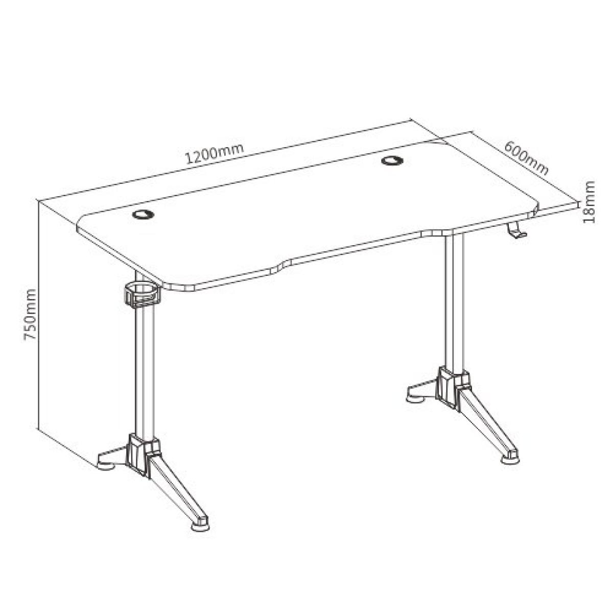 - Mesa com pernas em forma de T - Adequado para aplicativos de estúdio, jogos e DJ - Luzes de ambiente RGB multicoloridas - Superfície de mesa texturizada 18 mm - Borda curva ergonômica para mais conforto - Pés ajustáveis, estabilidade para qualquer superfície - Gancho de fone de ouvido integrado - Suporte para bebidas para copos ou latas - Sistema de gerenciamento de cabos - Cor: Área de trabalho preta com base preta - Material: aço / madeira - Inclui controle remoto (para luzes multicoloridas) - Dimensões Internas: 1200 x 750 x 600 mm - Dimensões altura máxima: 75 cm - Peso: 17,1 kg