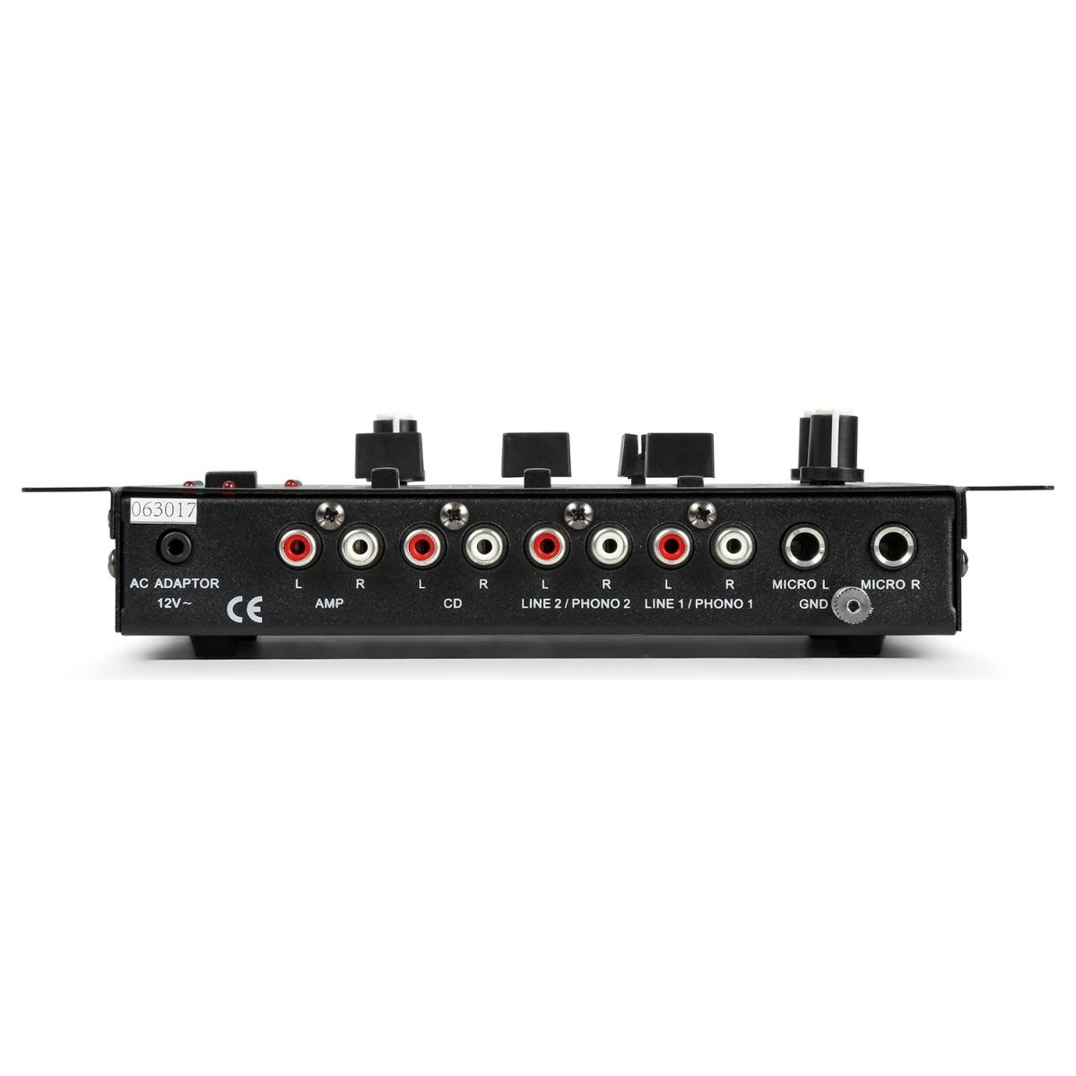 Mesa mistura de 4 canais para o DJ que começa. Muito util tambem para aplicações de karaoke, ou pequenos diretos e misturas de bandas sonoras para video.