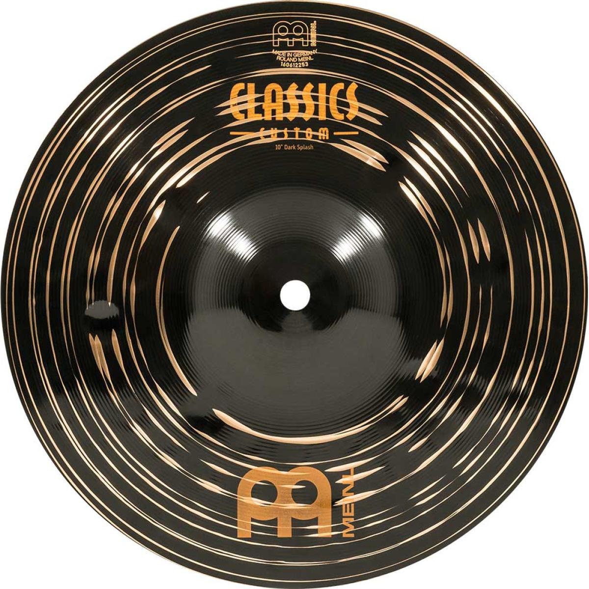 'Splash 10'' Serie Classics Custom Dark. Los platos la serie Classics Custom Dark se producen mecánicamente en Alemania sobre una aleación B10. En el proceso intervienen varias técnicas, tanto de presión como de martilleado computerizado. Además de ello tiene un acabado negro brillante que les infiere una imagen espectacular y un sonido particular. Características Principales:
