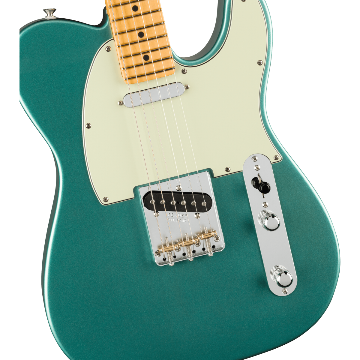 • Ponte Tele estilo vintage com 3 selas, guia de cordas através do corpo e selas de latão com ranhuras;