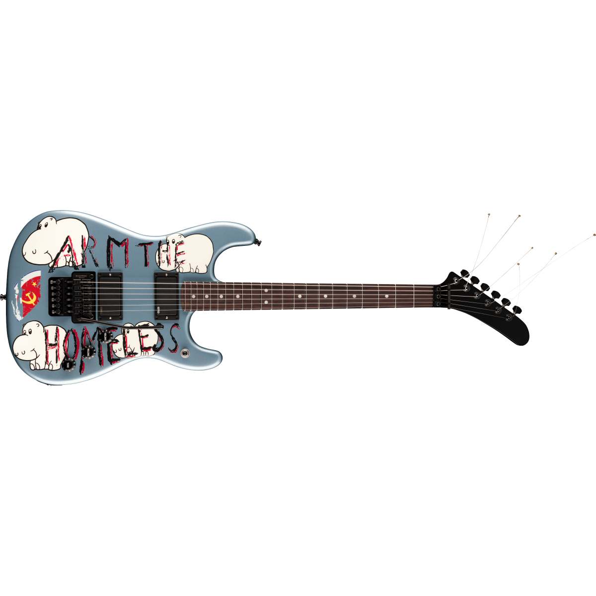 Fender Tom Morello Arm The Homeless Stratocaster RW Blue Ice Metallic (0140360783) é uma guitarra elétrica signature inspirada no icónico instrumento utilizado por Tom Morello. Construída para alto desempenho, combina eletrónica ativa EMG, tremolo double locking Gotoh e visual exclusivo com a arte “Arm The Homeless”.