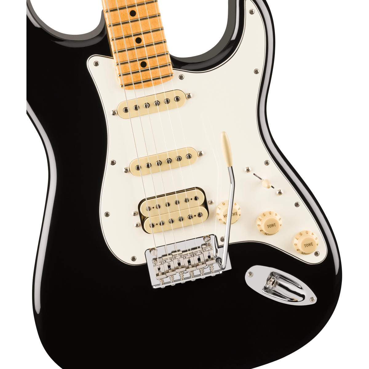 A Fender Player II Stratocaster HSS MN Black é uma guitarra elétrica de corpo sólido da série Player II, concebida para versatilidade sonora e desempenho moderno. Combina a clássica construção Stratocaster com configuração de pastilhas HSS e ponte tremolo sincronizada de 2 pontos.