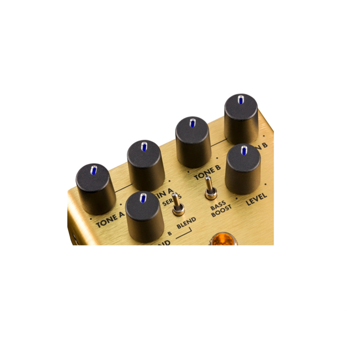 Com um som feroz e flexível, a Distorção Pugilista está pronta para adicionar algum ganho de peso pesado ao seu equipamento. Este design único apresenta motores de ganho duplo - com controlos de tom independentes para cada um - seleccionando múltiplas variações de distorção, assegurando que este pedal irá tocar bem com qualquer equipamento. O interruptor Series/Blend permite-lhe empilhar canais para uma distorção encorpada e multicamadas, enquanto o interruptor Bass Boost engrossa o seu som. O comando Blend mistura os dois canais para obter o melhor de ambos os mundos, criando um som único.