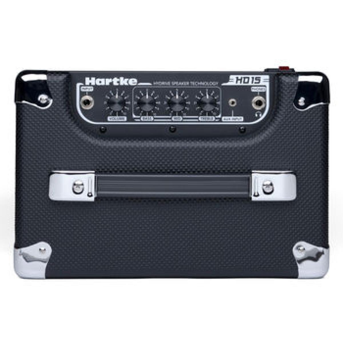• Amplificador montado na parte superior com controlos de volume, graves, médios e agudos ;