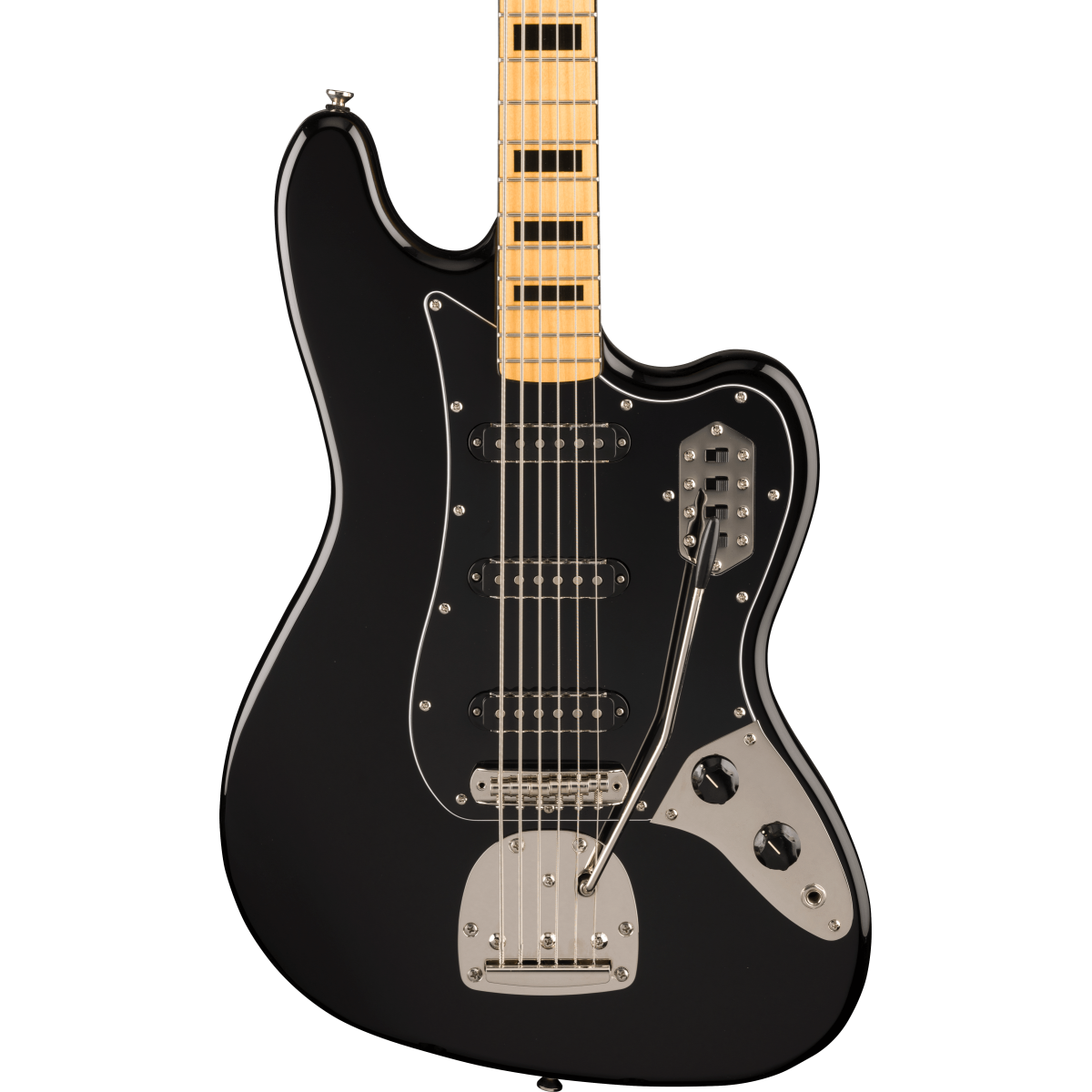 A ponte vintage com vibrato flutuante acrescenta possibilidades expressivas adicionais, ideal para efeitos subtis e texturas criativas. O acabamento preto, aliado ao hardware niquelado, confere-lhe um visual clássico e intemporal, adequado tanto para palco como para estúdio.