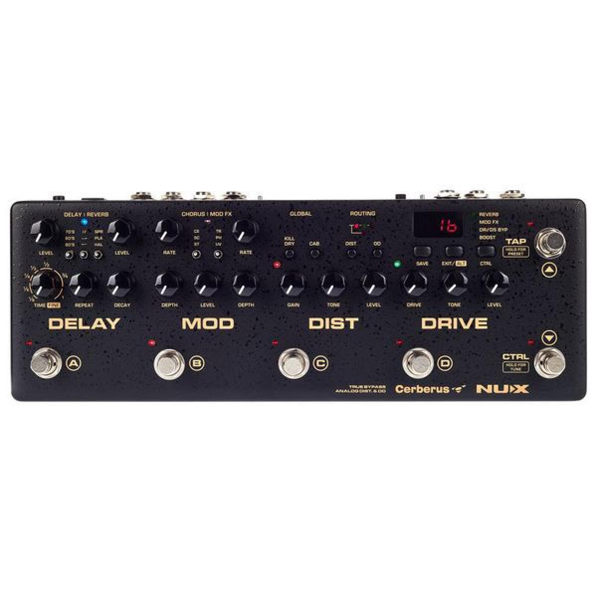 • 16 tipos de efeitos diferentes em 4 grupos de efeitos (delay/reverb, mod, distorção, drive);