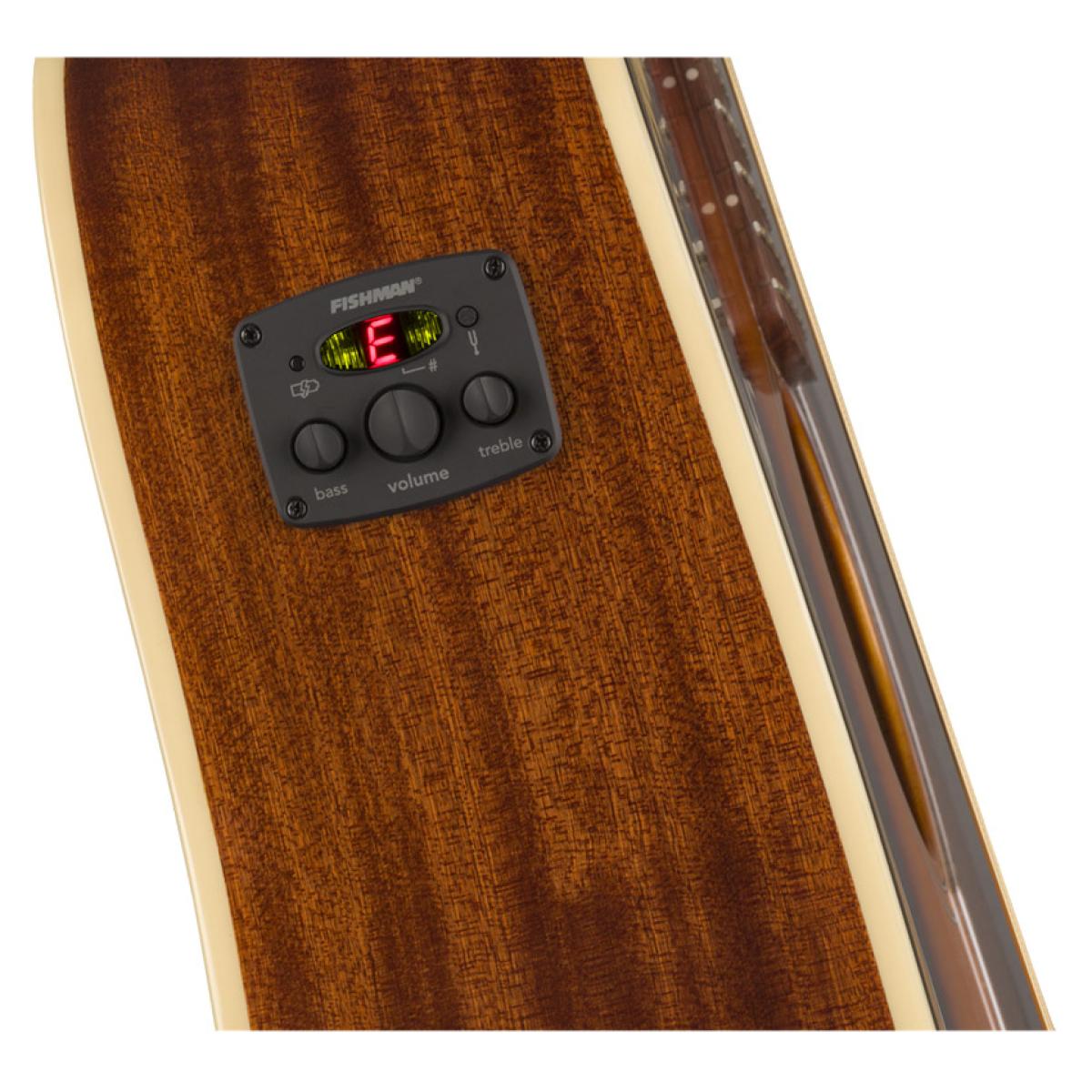 Voltando à sua acústica colorida dos anos 60, o violão eletroacústico Redondo Player da Fender® oferece um timbre encorpado e rico em harmônicos, uma tocabilidade suave e visual refinado, que incluem um acabamento acetinado, um headstock "6 em linha" e escudo dourado. O corpo estilo "Redondo" é um modelo exclusivo da Fender®, e apresenta o fundo e as laterais em mahogany e o tampo maciço em Sitka Spruce. Sob o tampo desse belo instrumento estão os bracing escalopados em "X", patenteados pela Fender® para massa mínima e ressonância máxima. O cavalete em walnut (nogueira), tem o rastilho Graph Tech NuBone que resulta em mais sustain e ressonância, além de um novo sistema de pré-amplificador Fishman que entrega fielmente o som natural do violão. O braço em mahogany (mógno) com perfil "Slim C" é um pouco mais fino e extremamente confortável. Timbre e conforto são as marcas registradas dos instrumentos acústicos Fender® desde os anos 60.