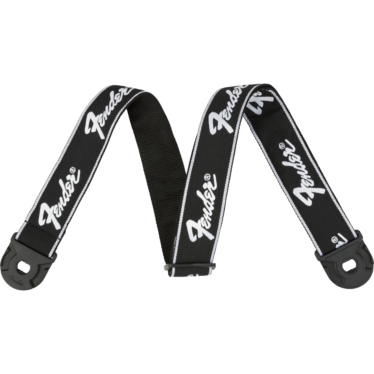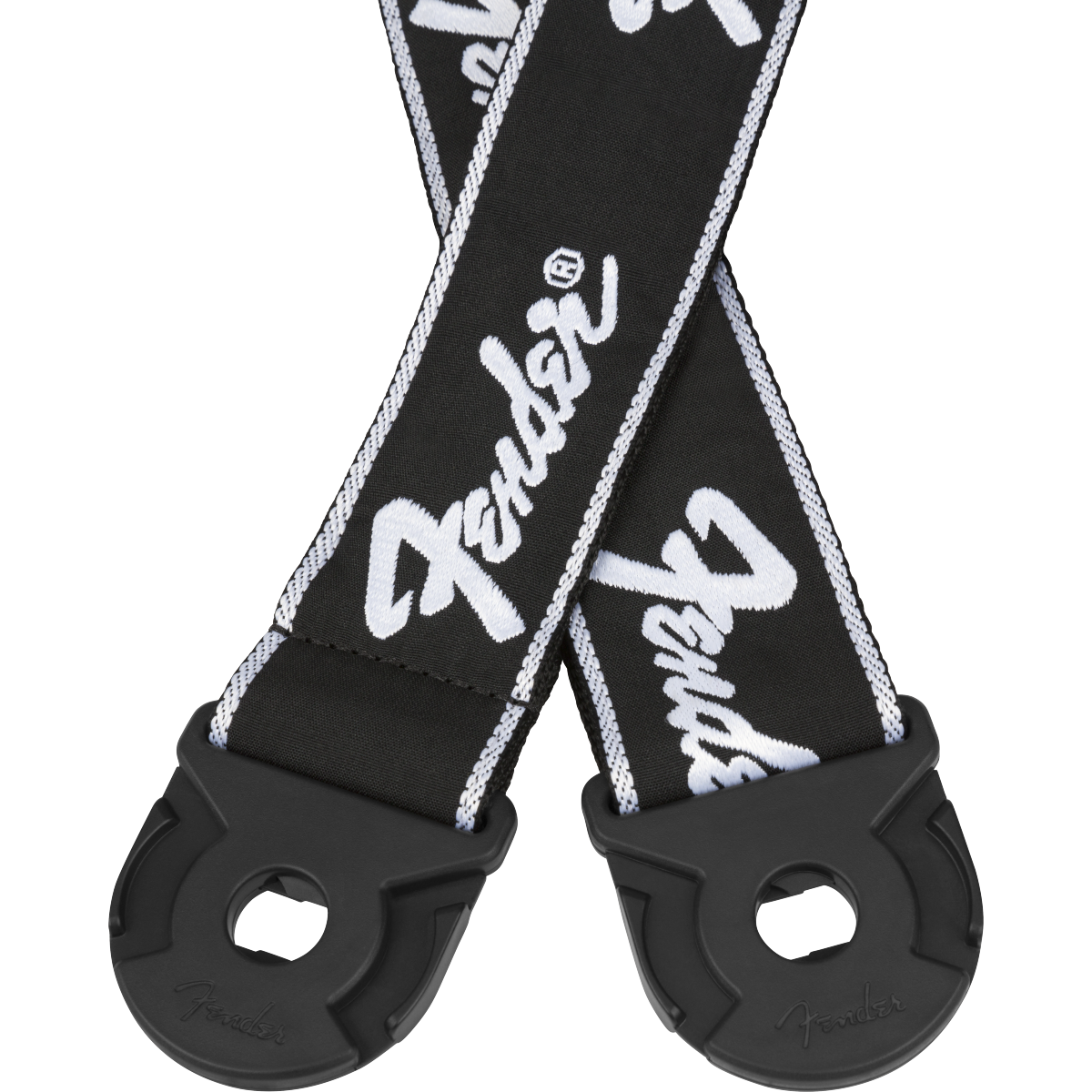 Fender Quick Grip Locking End Strap, Black with White Running Logo