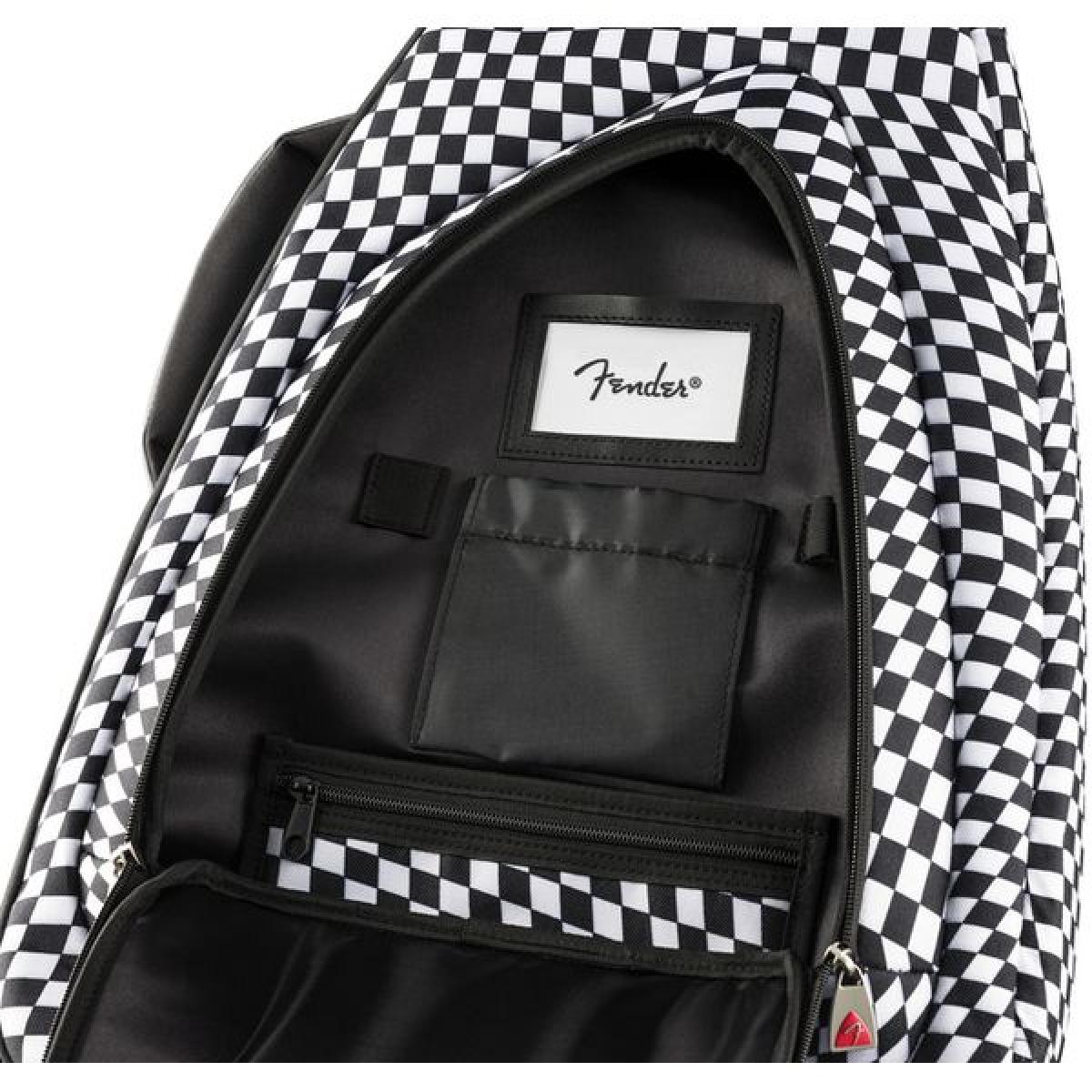 • Bolso frontal com janela para cartões de visita, bolso para cordas extra, bolsa almofadada amovível para ferramentas, bolso elástico para picaretas e presilha elástica para canetas ;