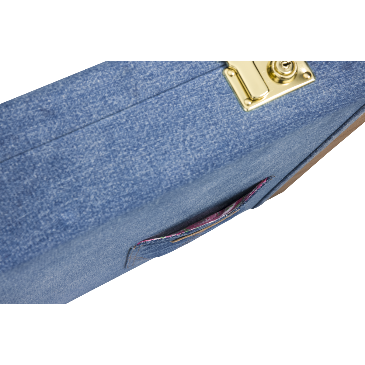 Para sempre em ganga. Construída para envelhecer e durar como o seu par de calças de ganga preferido, a Mala Fender® x Wrangler® Denim fornece o aspecto inconfundível de Wrangler® com a protecção e estilo de confiança que conhece da Fender®. Feita de madeira durável de 3 camadas, esta parece a sua mala Fender® do dia-a-dia, mas apresenta torções únicas de Wrangler®. Com a sua ganga durável, o clássico compartimento de acessórios forrado a rosa Fender paisley, e o icónico design do bolso traseiro "W", esta mala virará tantas cabeças quantas as suas calças de ganga mais apertadas.