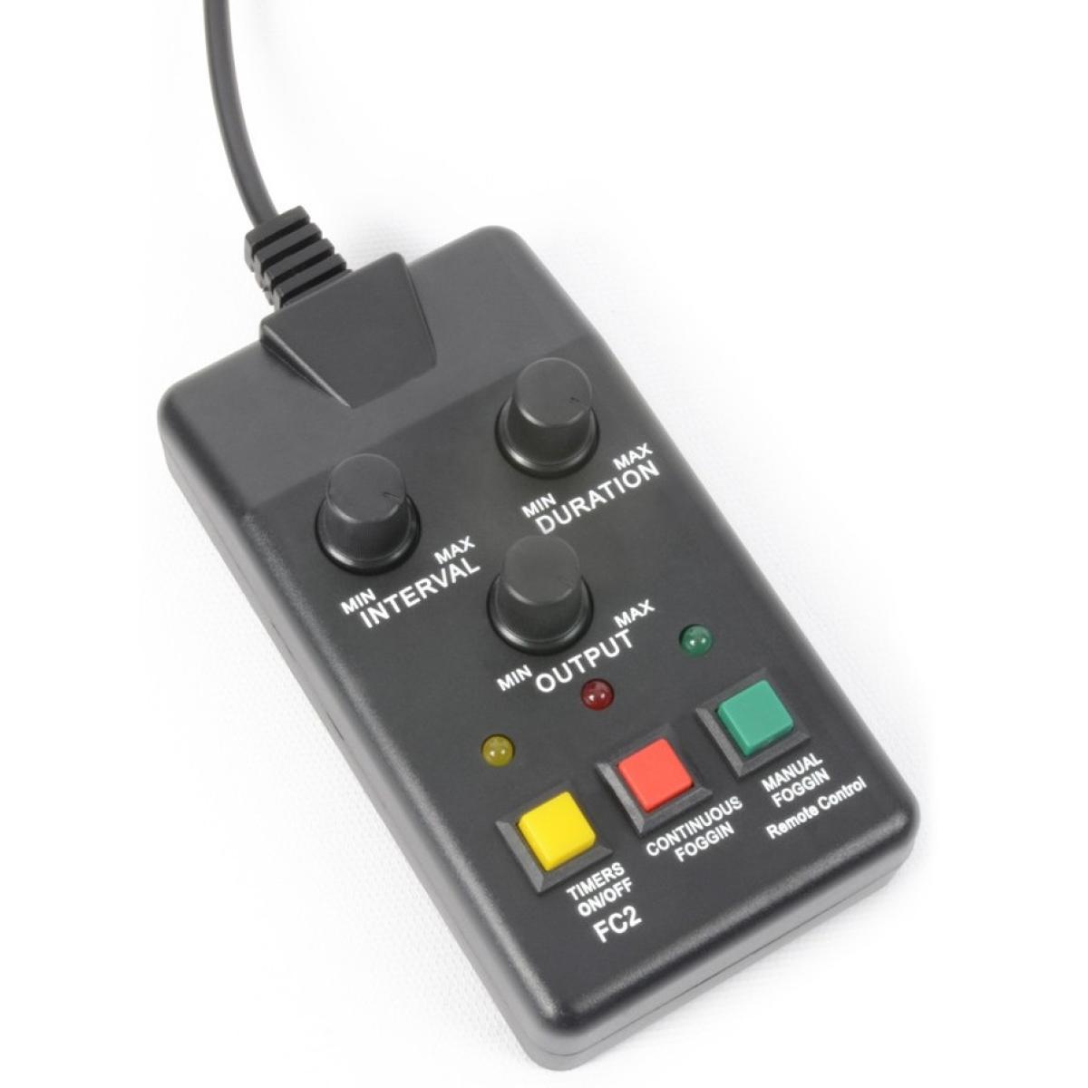 Com o comando pode ajustar-se a intensidade de fumo, temporizador e intervalo de tempo. Se necessitar, também pode ajustar a máquina de fumo para libertar continuamente fumo até criar um lençol de fumo junto ao chão.