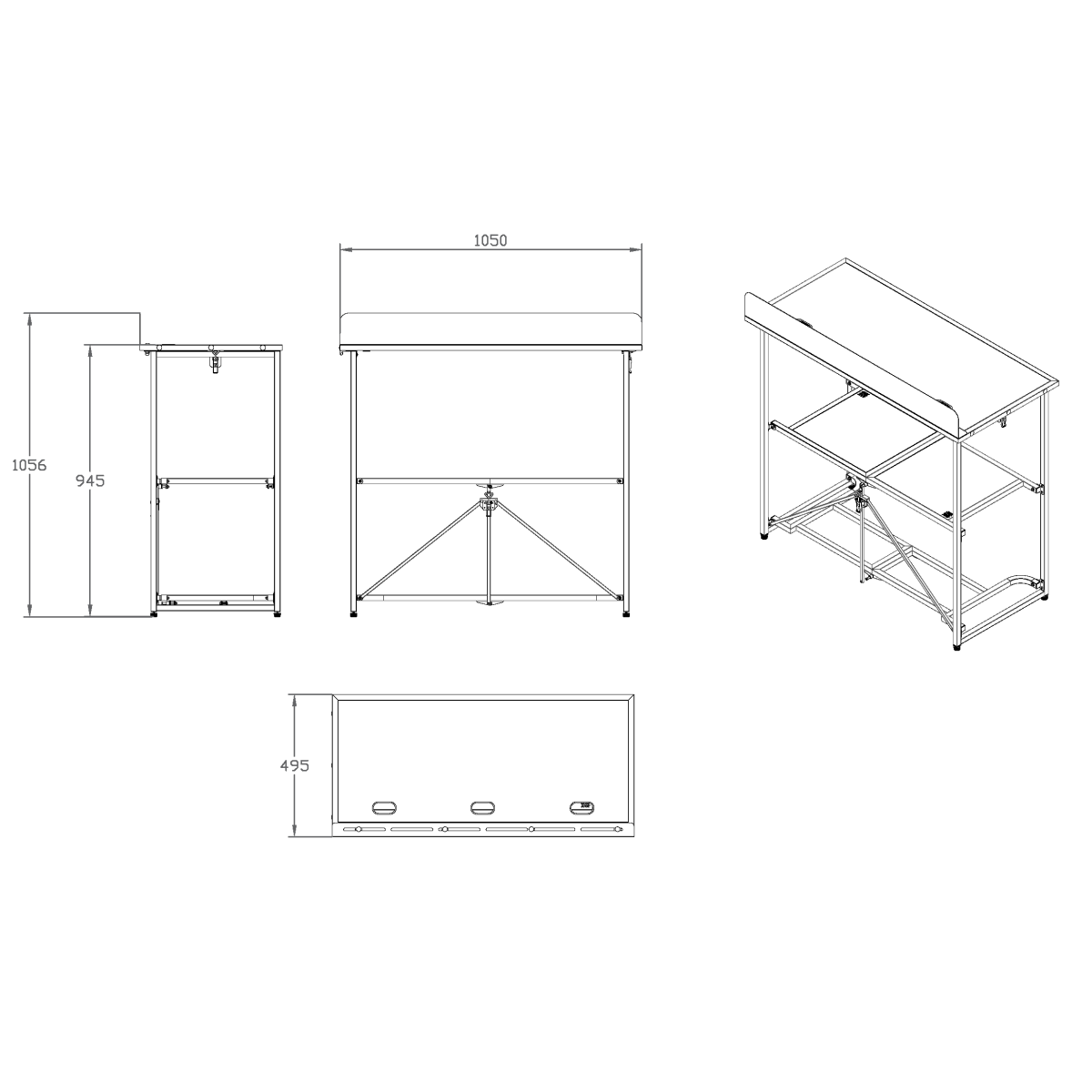 • Dimensões dobrado: 1070 x 510 x 150 mm