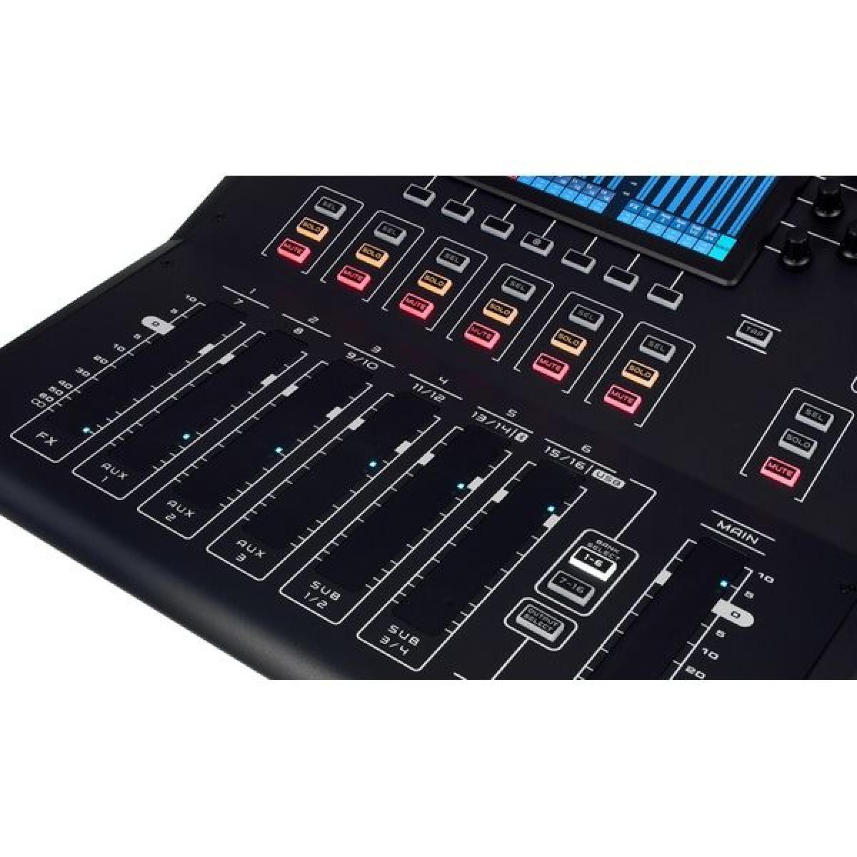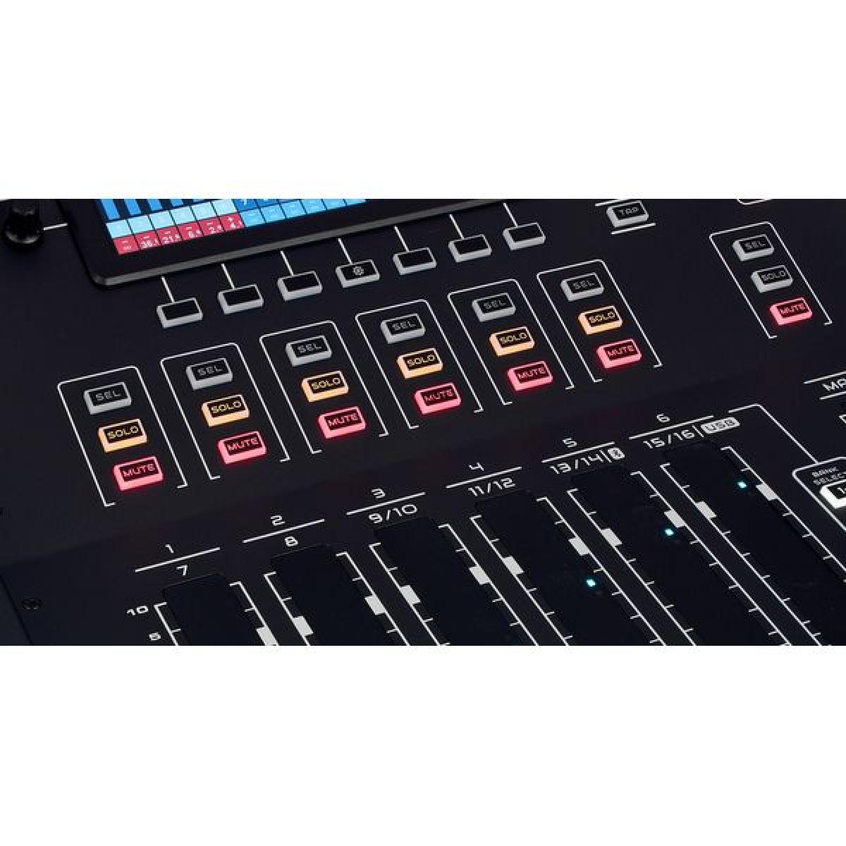 Mesa de mistura digital de 16 canais com controlo intuitivo, processamento DSP integrado, Bluetooth e interface USB. Ideal para som ao vivo, streaming e estúdio.