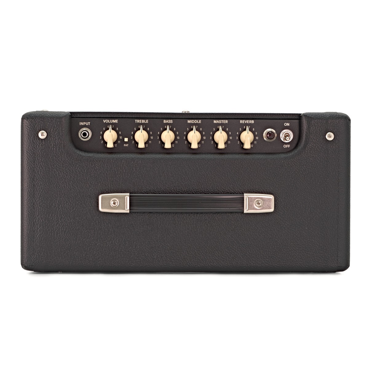As pequenas dimensões do Blues Junior fazem dele o amplificador ideal para ensaios, pequenos concertos e sessões de improviso. 15 watts de tom de válvula significa que o Blues Junior pode criar uma verdadeira saturação do amplificador de potência a níveis de volume sensíveis, dando-lhe uma maior usabilidade para a gravação de músicos. Também está incluído um prático EQ de 3 bandas para escultura tonal, e um circuito FAT mid-boost. Este é um amplificador de canal único, sem sentido, tem um esquema de controlo simples mas eficaz, e é ideal para guitarristas que gostam de se ligar e obter um grande tom com o mínimo de barulho.