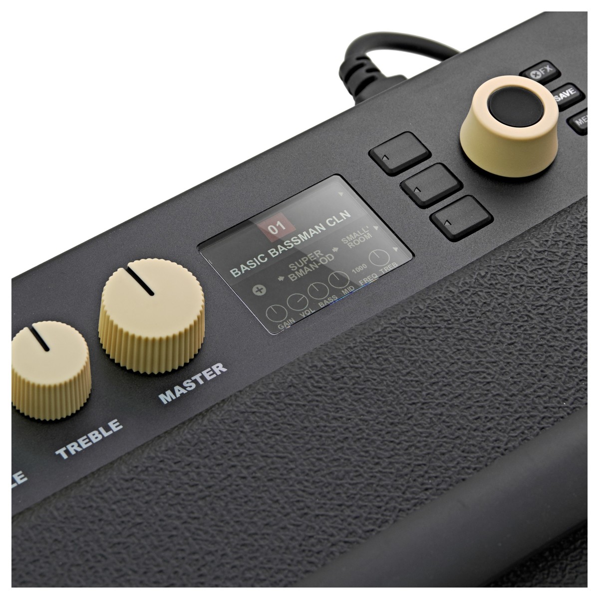 • Conjunto de altifalantes: Design especial Fender de 10" e tweeter de compressão