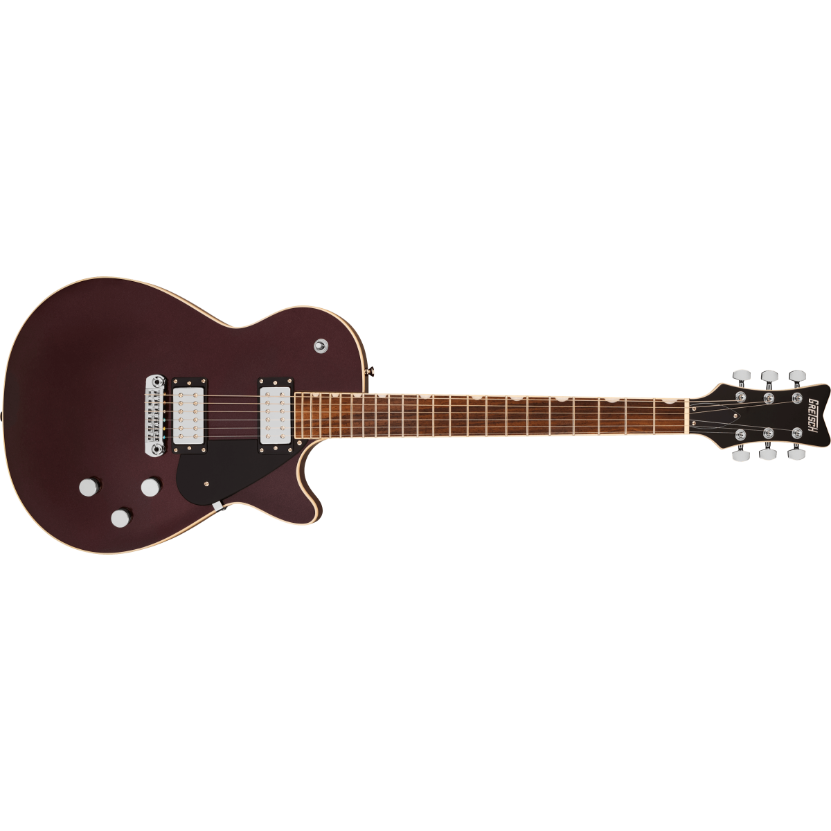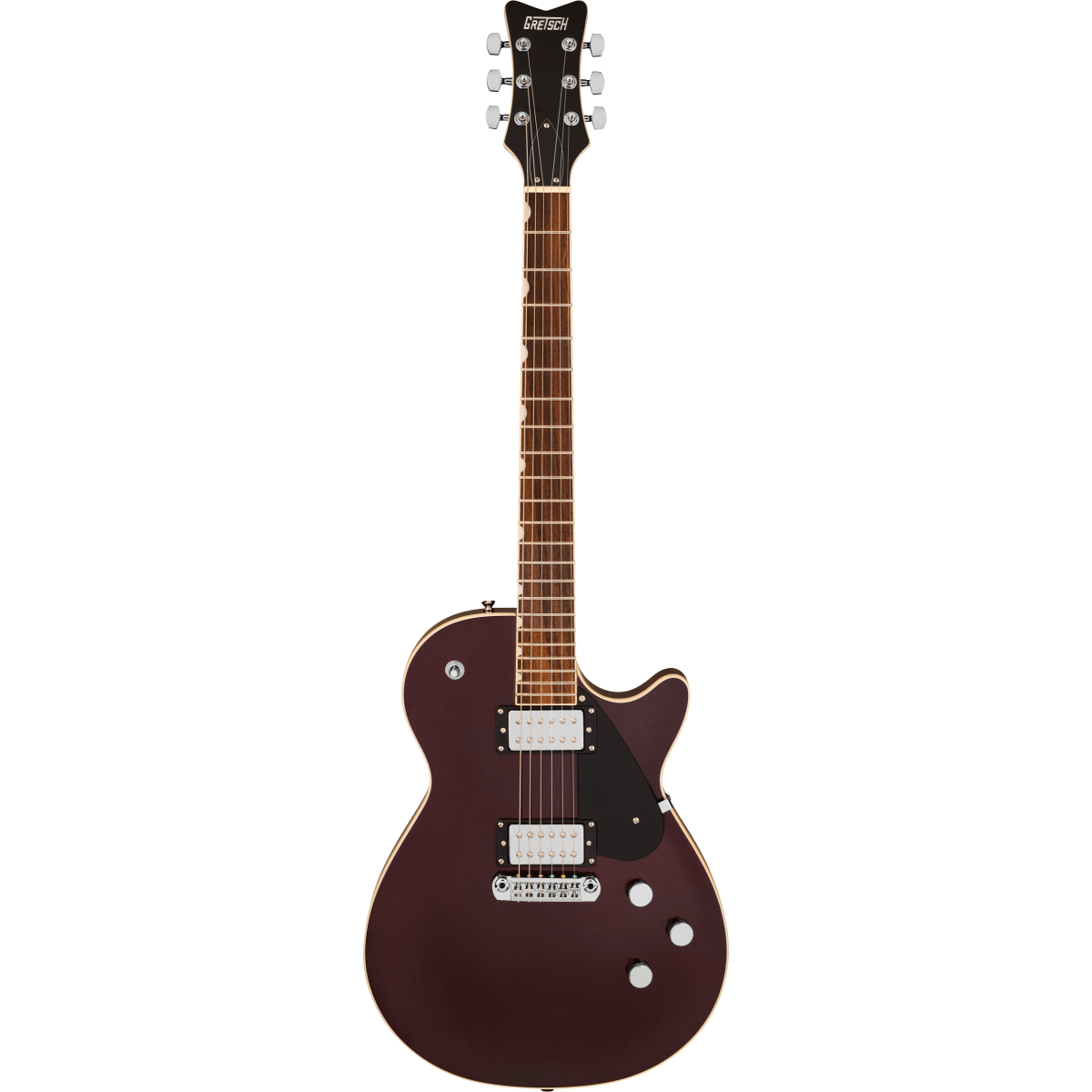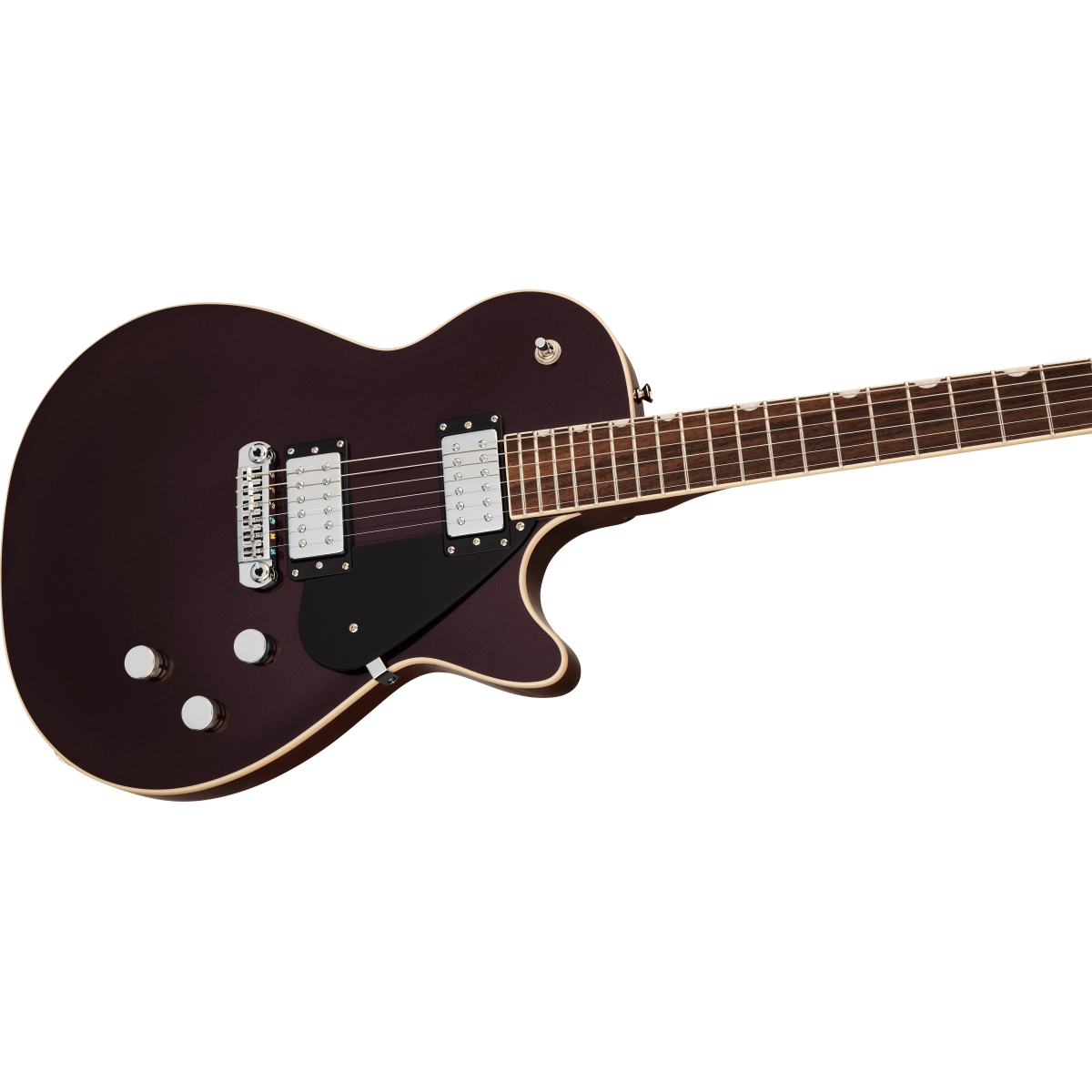 A Gretsch Electromatic Jet RW Dark Cherry Metallic é uma guitarra elétrica de corpo sólido com design single-cut, equipada com pastilhas humbucker e construção em madeiras selecionadas para grande versatilidade sonora e excelente tocabilidade.