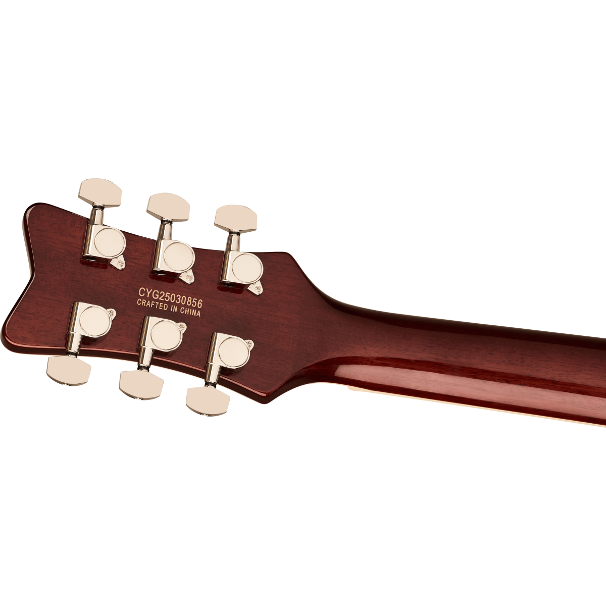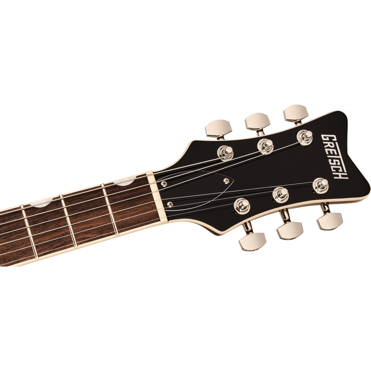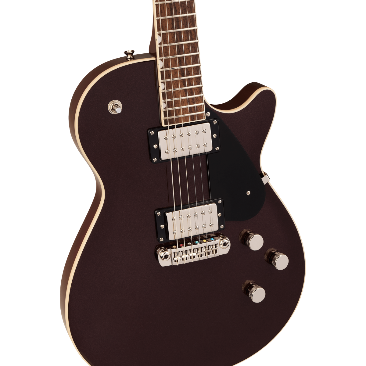 A Gretsch Electromatic Jet RW Dark Cherry Metallic é uma guitarra elétrica de corpo sólido com design single-cut, equipada com pastilhas humbucker e construção em madeiras selecionadas para grande versatilidade sonora e excelente tocabilidade.