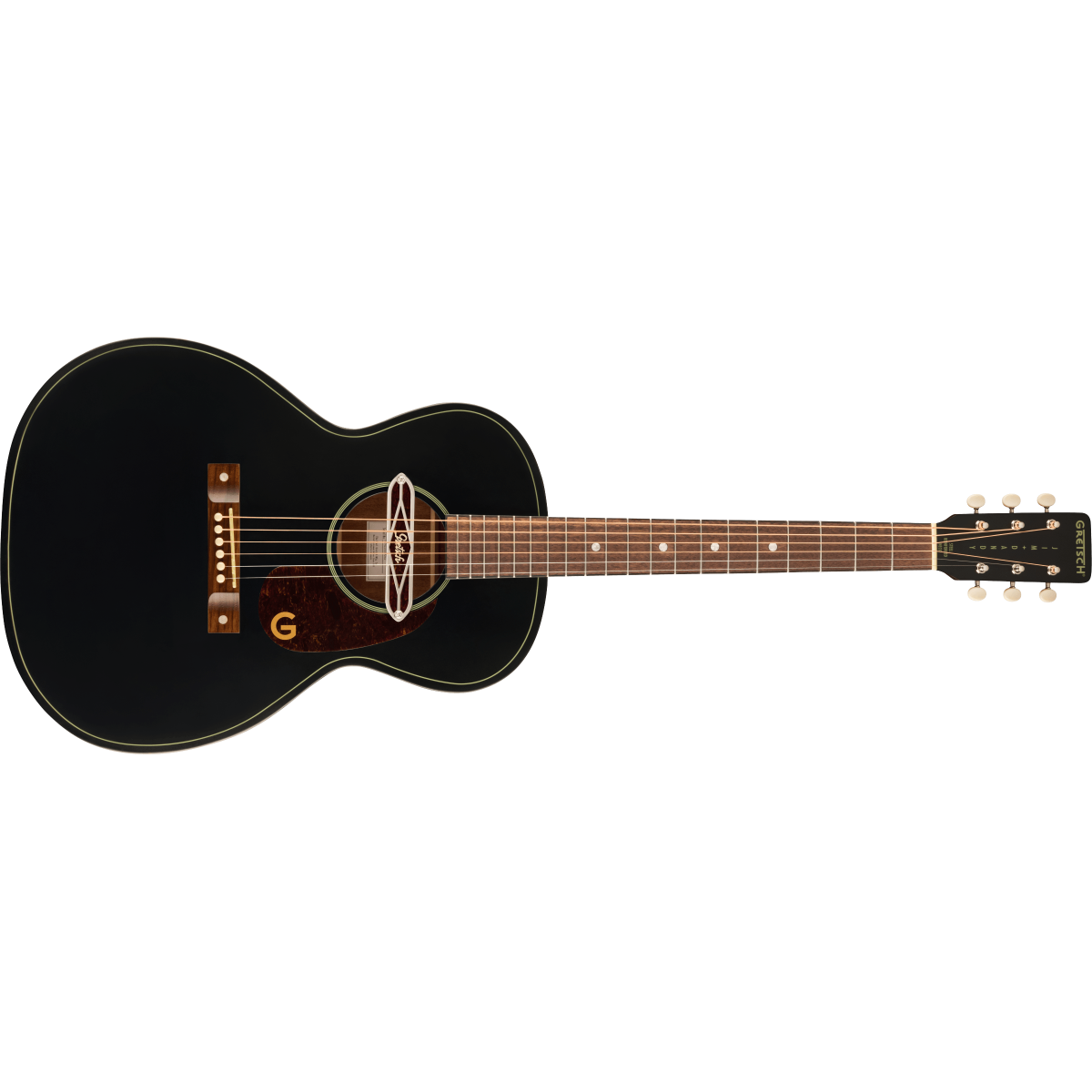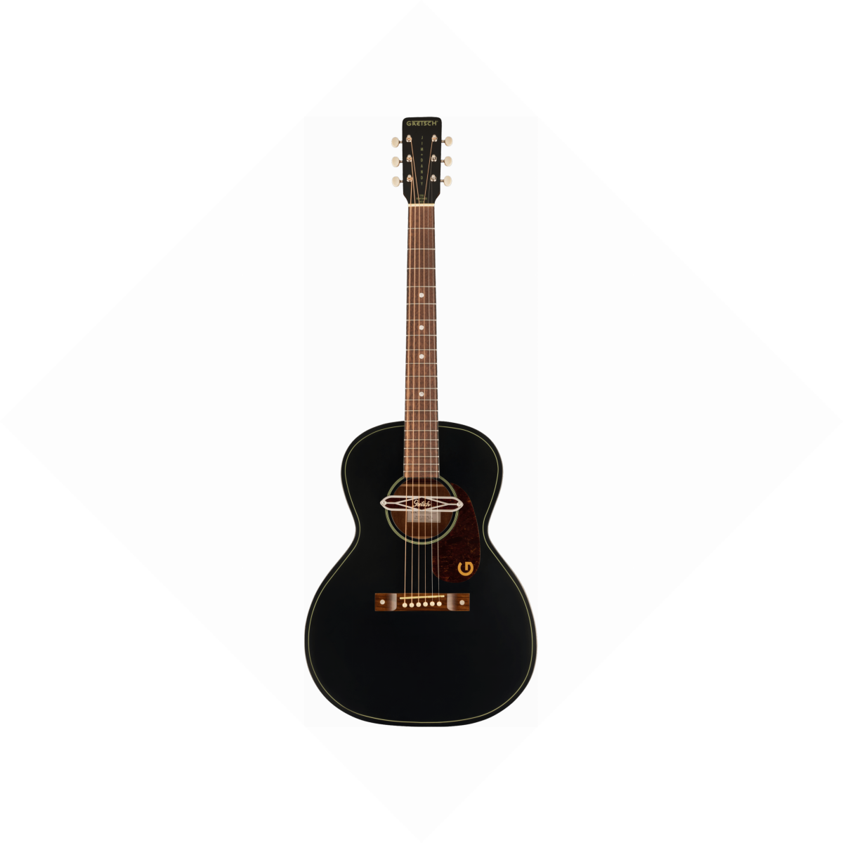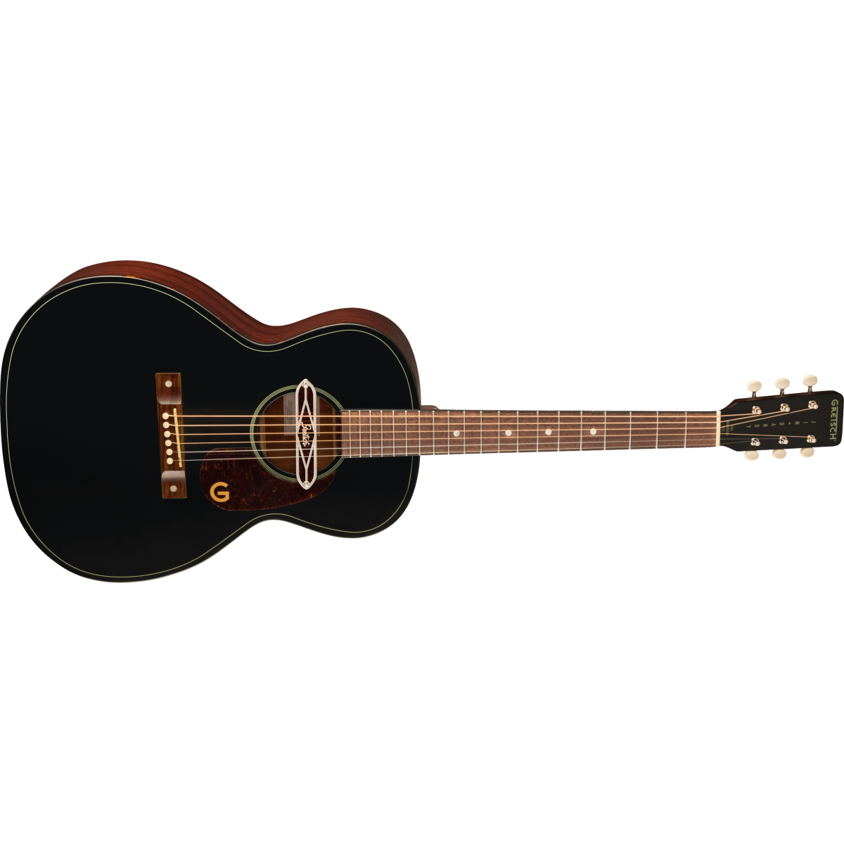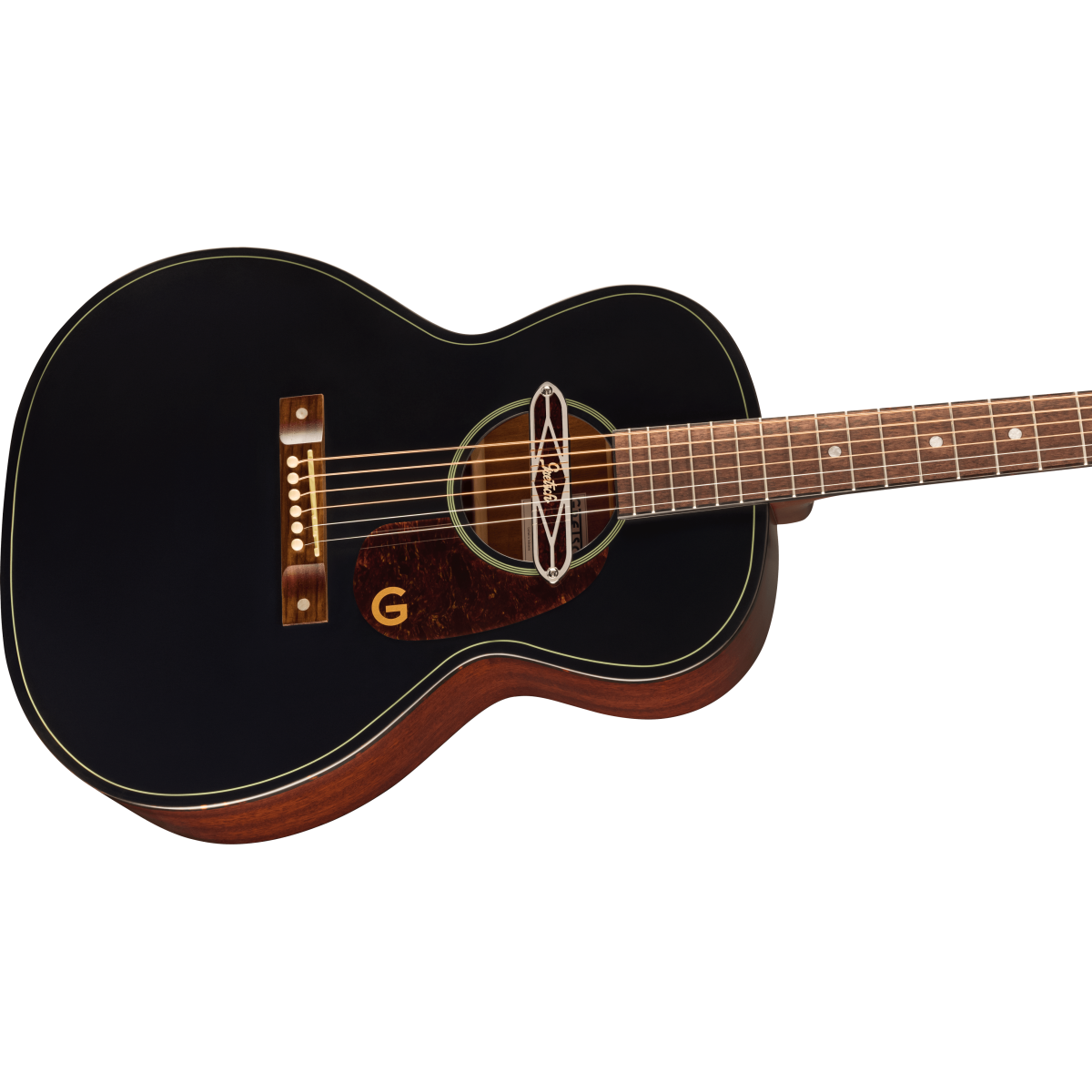 • Gretsch® Deltoluxe soundhole pickup com anéis de roseta dourados/brancos ;
