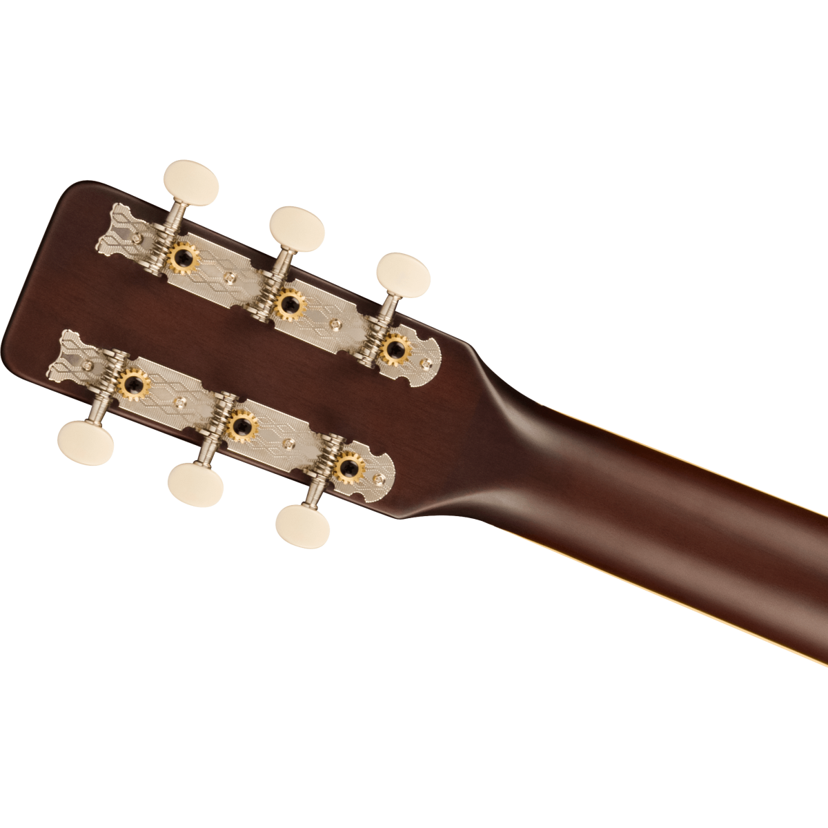• Mecanismos de afinação vintage de engrenagem aberta die-cast ao estilo dos anos 50 e botões de correia vintage com pino de extremidade;