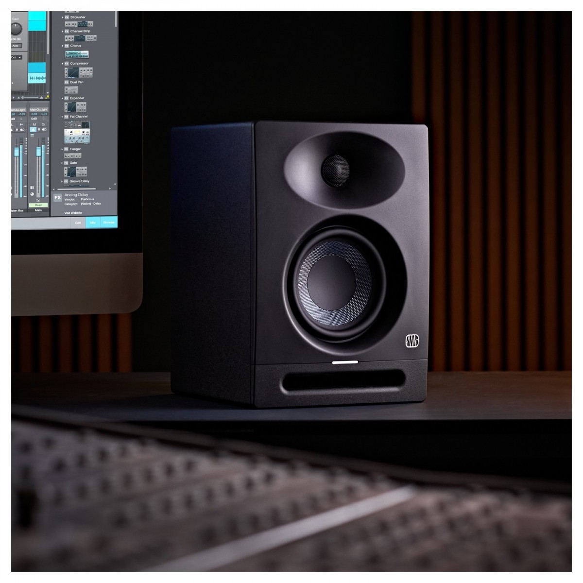Com o seu driver de baixa frequência em tecido composto de 5 polegadas e tweeter de cúpula de seda de 1 polegada, o Eris Studio 5 produz um som cristalino e transparente com uma saída máxima de 102 dB. Alimentado por uma bi-amplificação de 80 W Classe AB, este monitor assegura que todos os detalhes do seu áudio são reproduzidos com a máxima precisão.