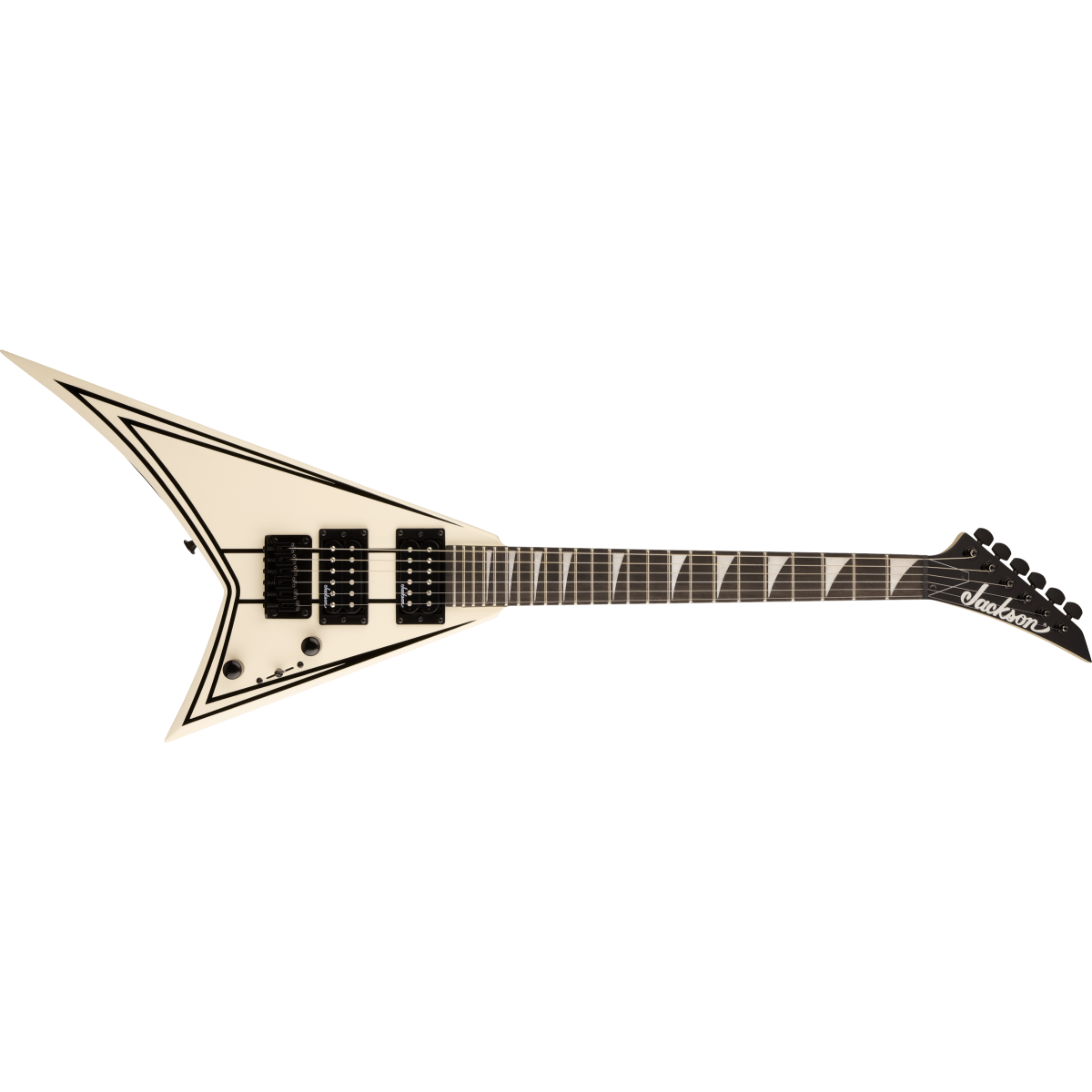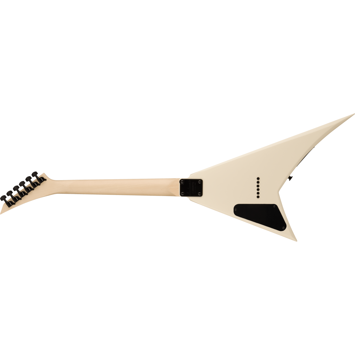 • Disponível em branco neve com ferragens pretas e cabeçote Jackson pontiagudo com 6 cordas em linha;