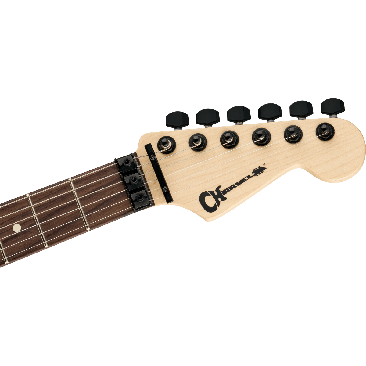 • Afinadores selados fundidos sob pressão da marca Charvel®, placa de pescoço Charvel e botões de correia padrão;