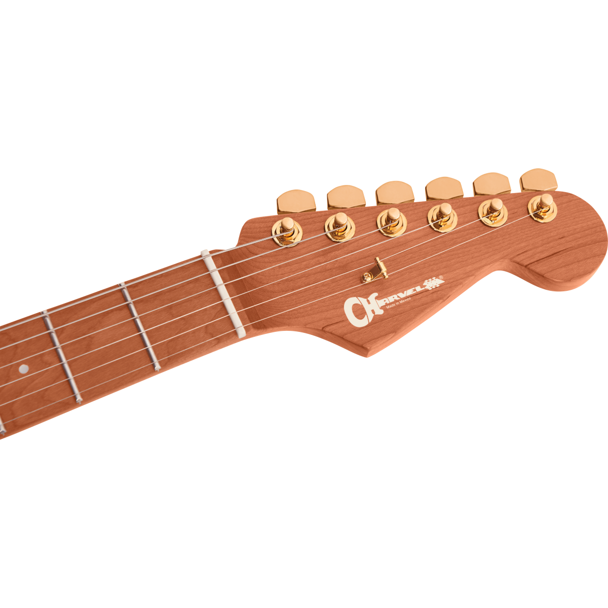 • Afinadores de bloqueio selados e fundidos da marca Charvel e botões de correia padrão;