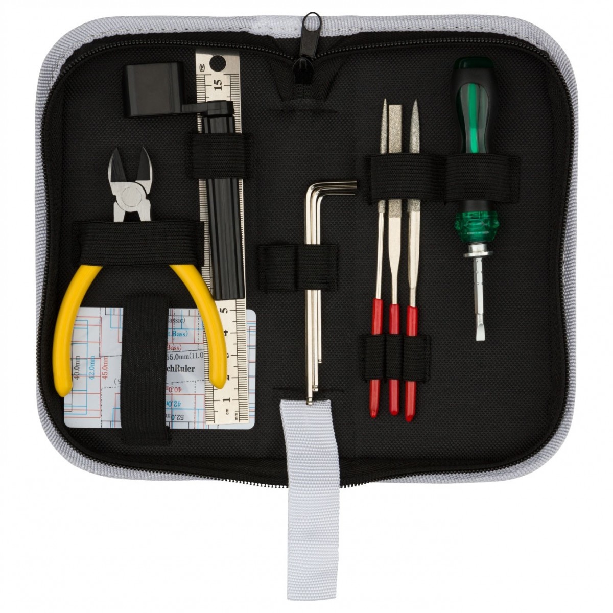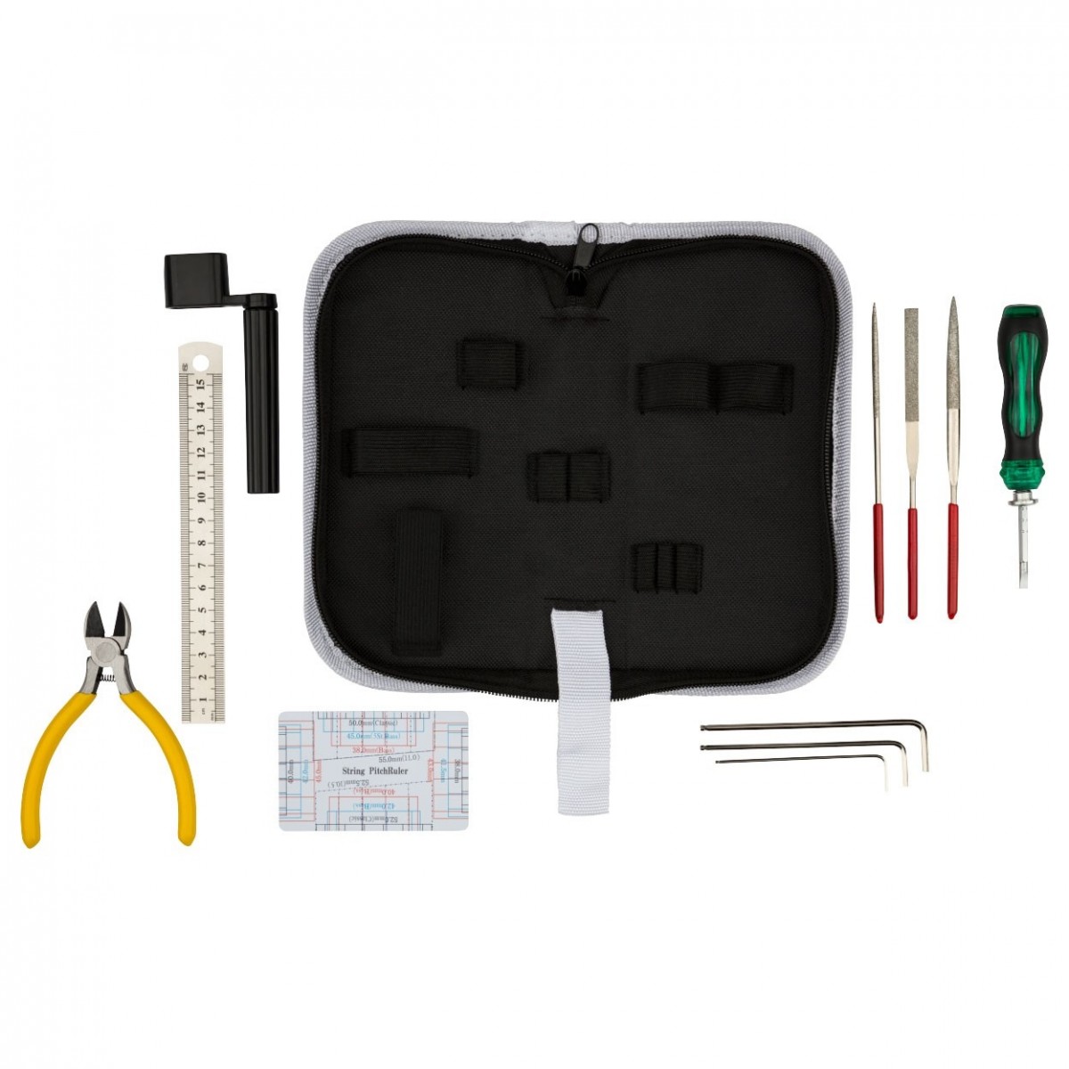 • Incluído: Chaves sextavadas, chave de fenda, Gauge de lâminas, enrolador/cortador de cordas, arquivos, régua, bolsa com zíper