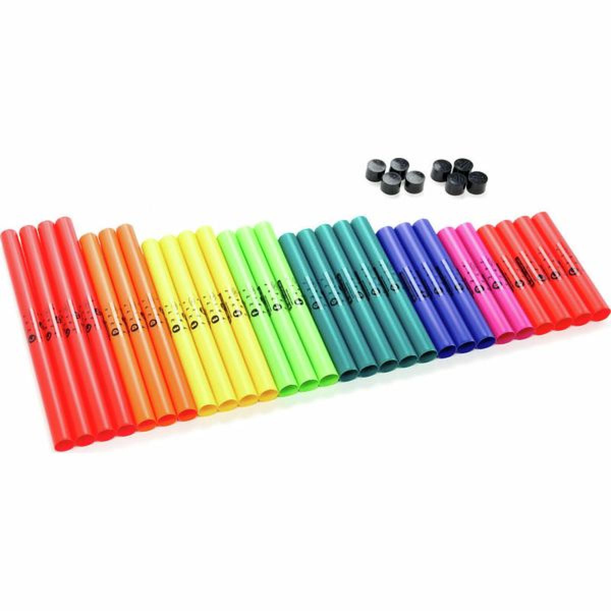 O conjunto inclui os seguintes tubos Boomwhackers: