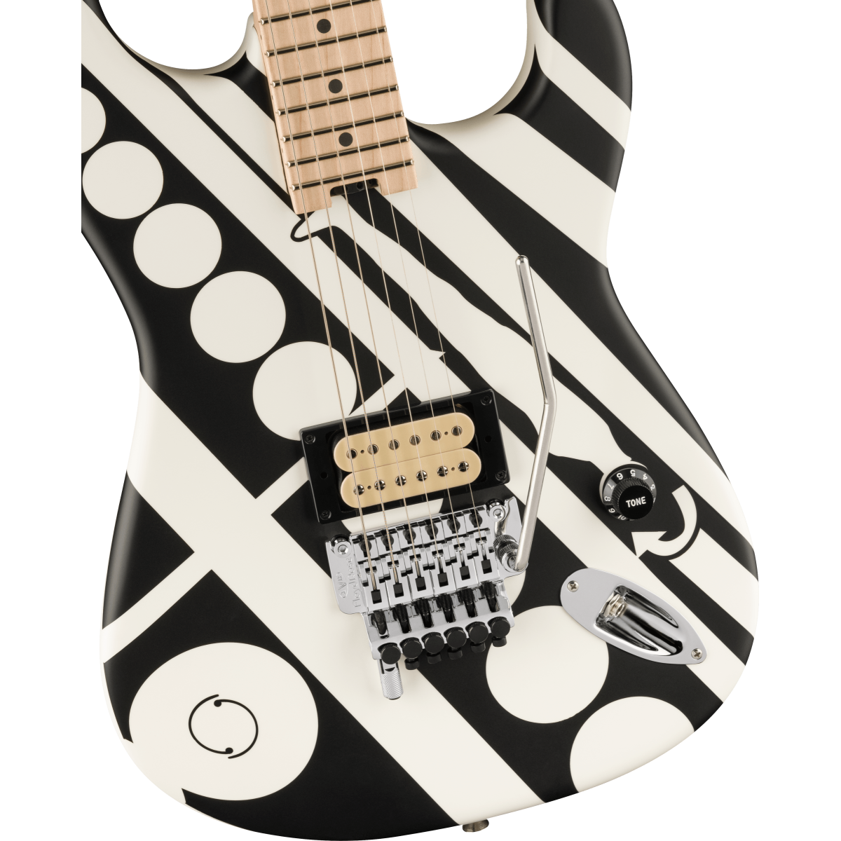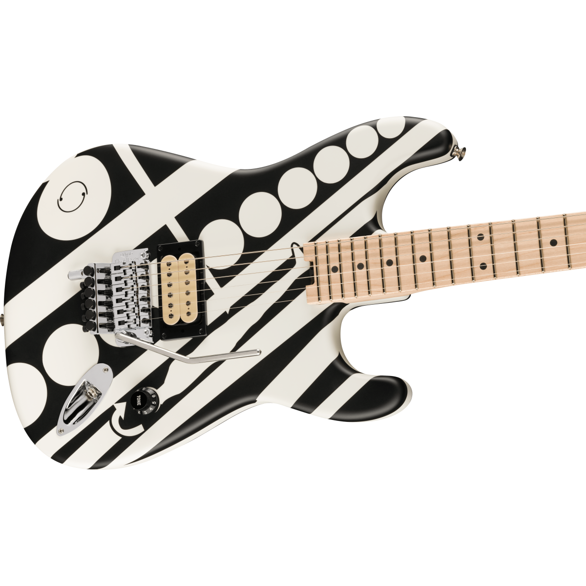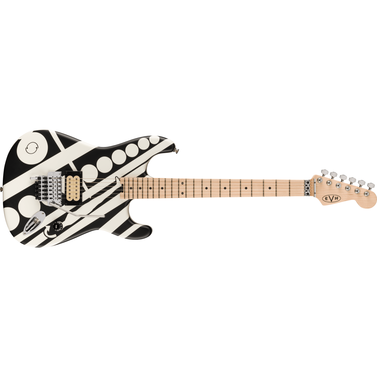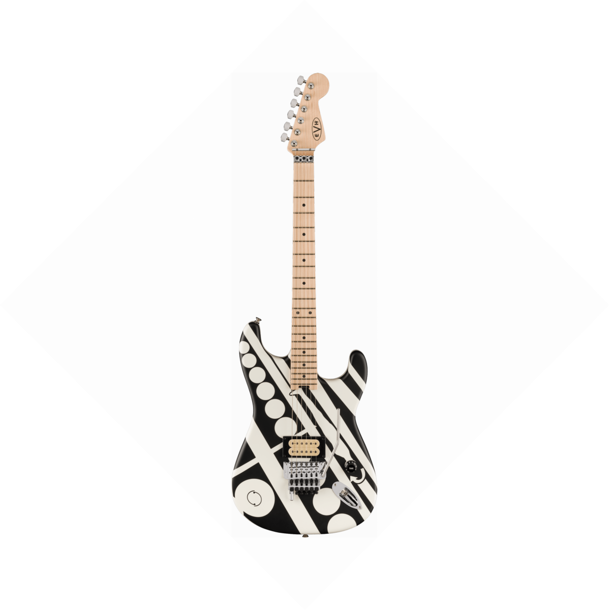 EVH Striped Series Circles, Maple Fingerboard, Satin White and Black