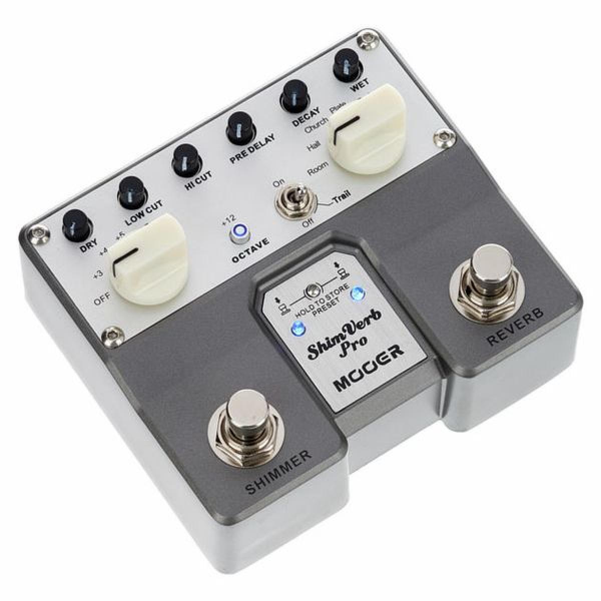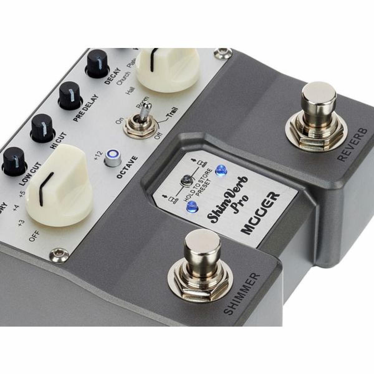 • O pedal "Shimmer" adiciona harmónicos altos ao som do hall
