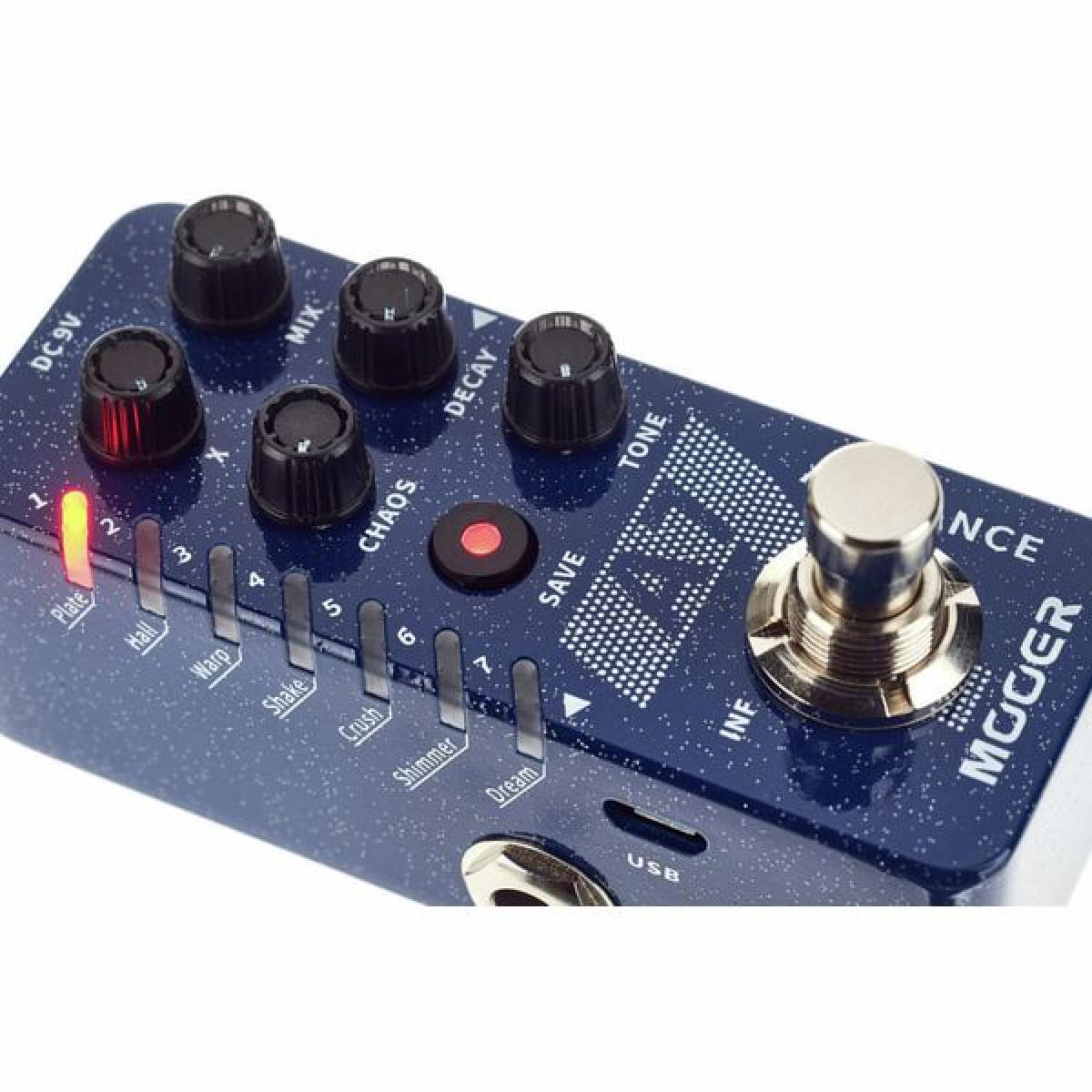 • 7 modos de reverberação seleccionáveis: Plate, Hall, Warp, Shake, Crush, Shimmer, Dreamer