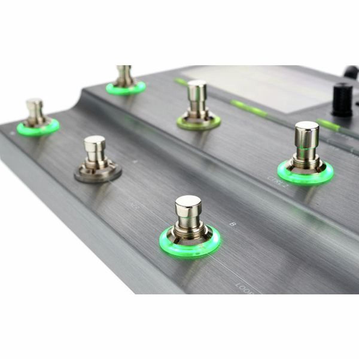 • Botões de controlo de efeitos para Comp, Wah, FX A, DS/OD, Amp, Cab, NS, Tone Cap, EQ, FX B, FX Loop, Delay e Reverb