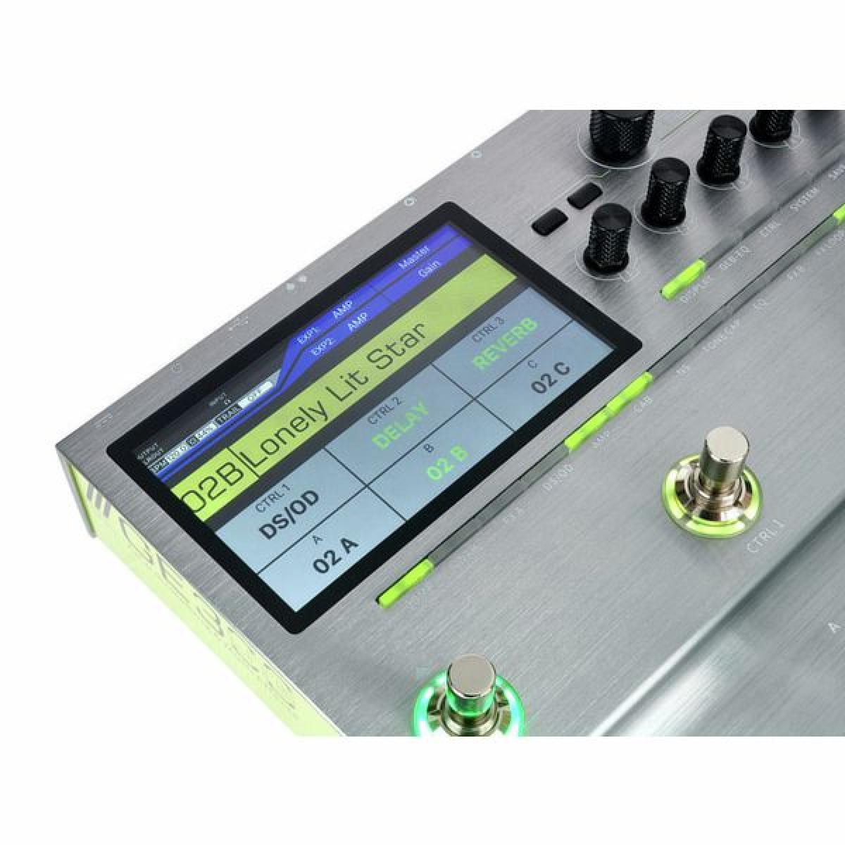 • Modelos de amplificadores de alta qualidade que utilizam a tecnologia de modelação digital não linear da Mooer e simulações de cabinas baseadas em IR para emular a dinâmica e a sensação de um amplificador de válvulas real
