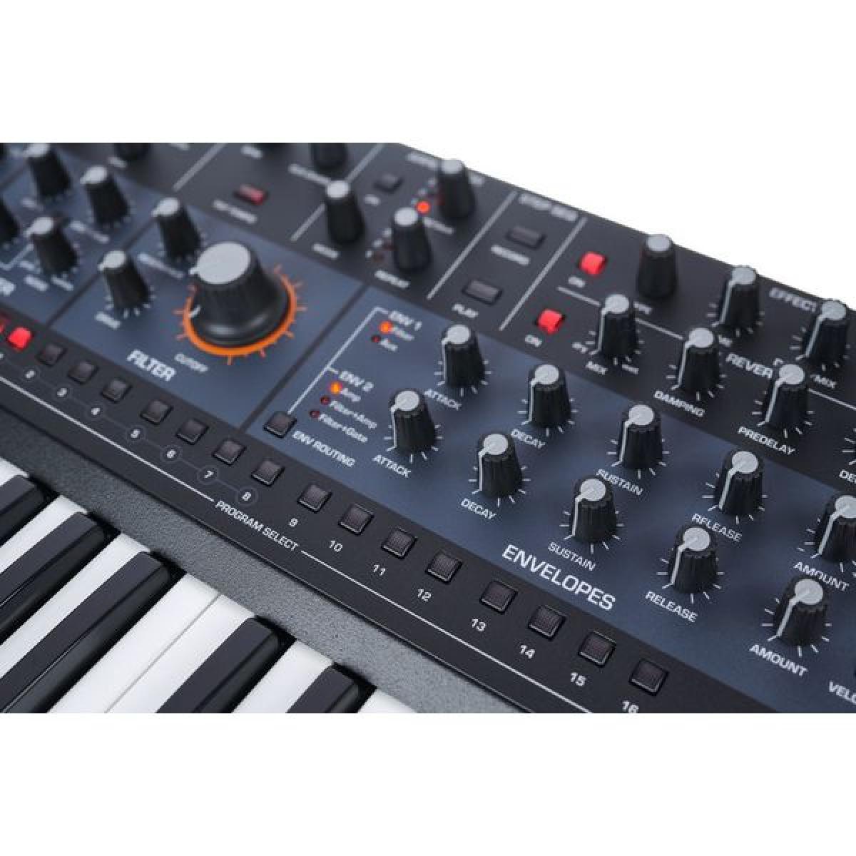• Filtro passa-baixo de 4 pólos com ressonância baseado no Prophet 5 (Rev 4) ;