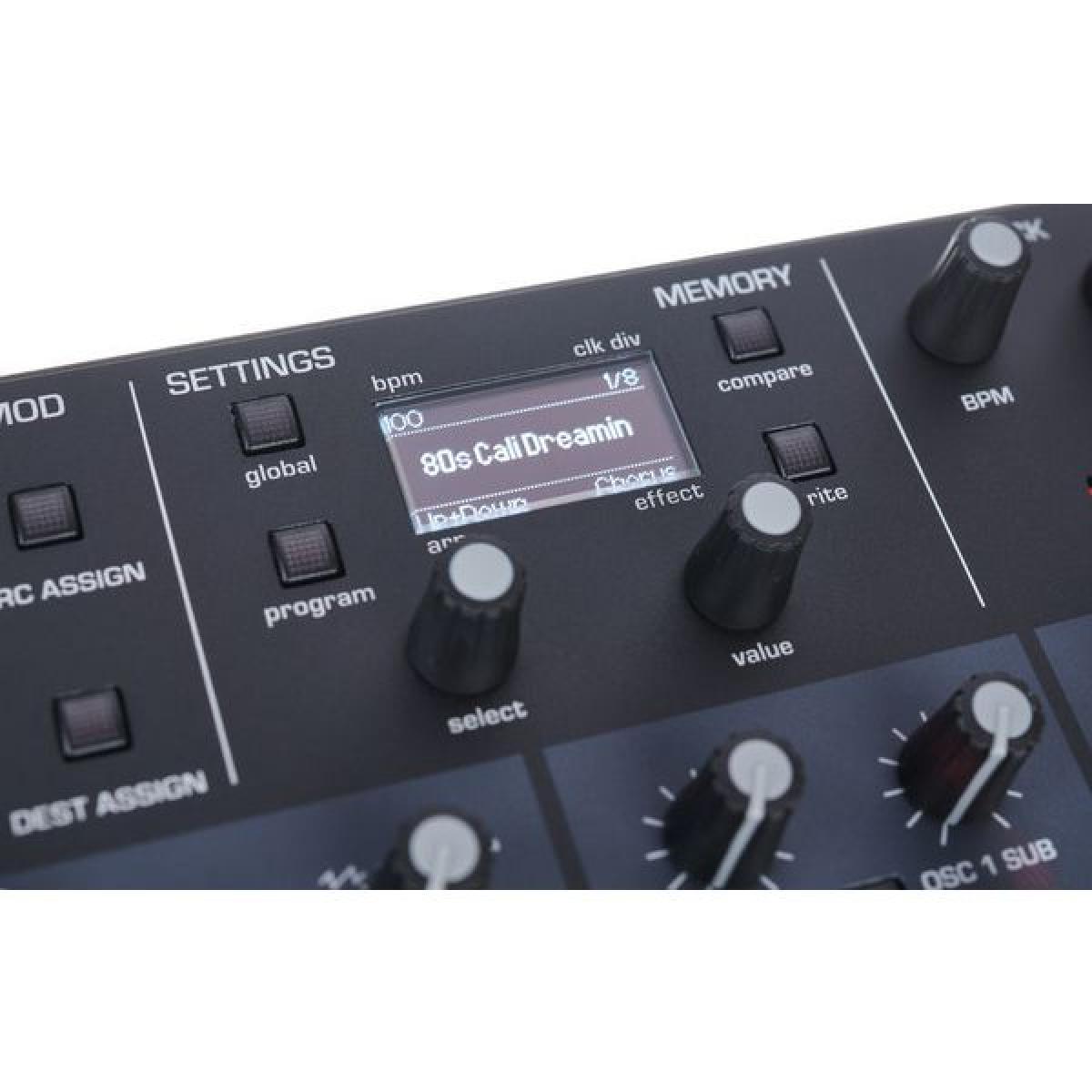 • Dois LFOs livremente atribuíveis com 5 formas de onda (triângulo, dente de serra, rampa, quadrado e aleatório) e sincronização de tempo ;