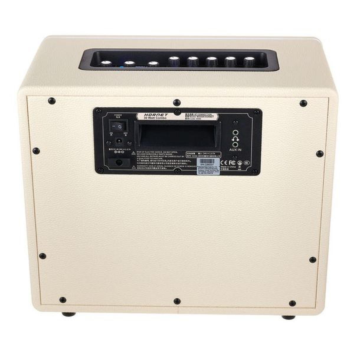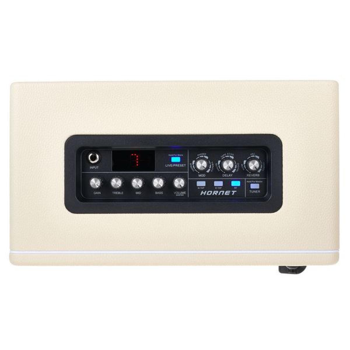 • Controlos para Ganho, Agudos, Médios, Graves, Volume, Mod, Atraso e Reverberação