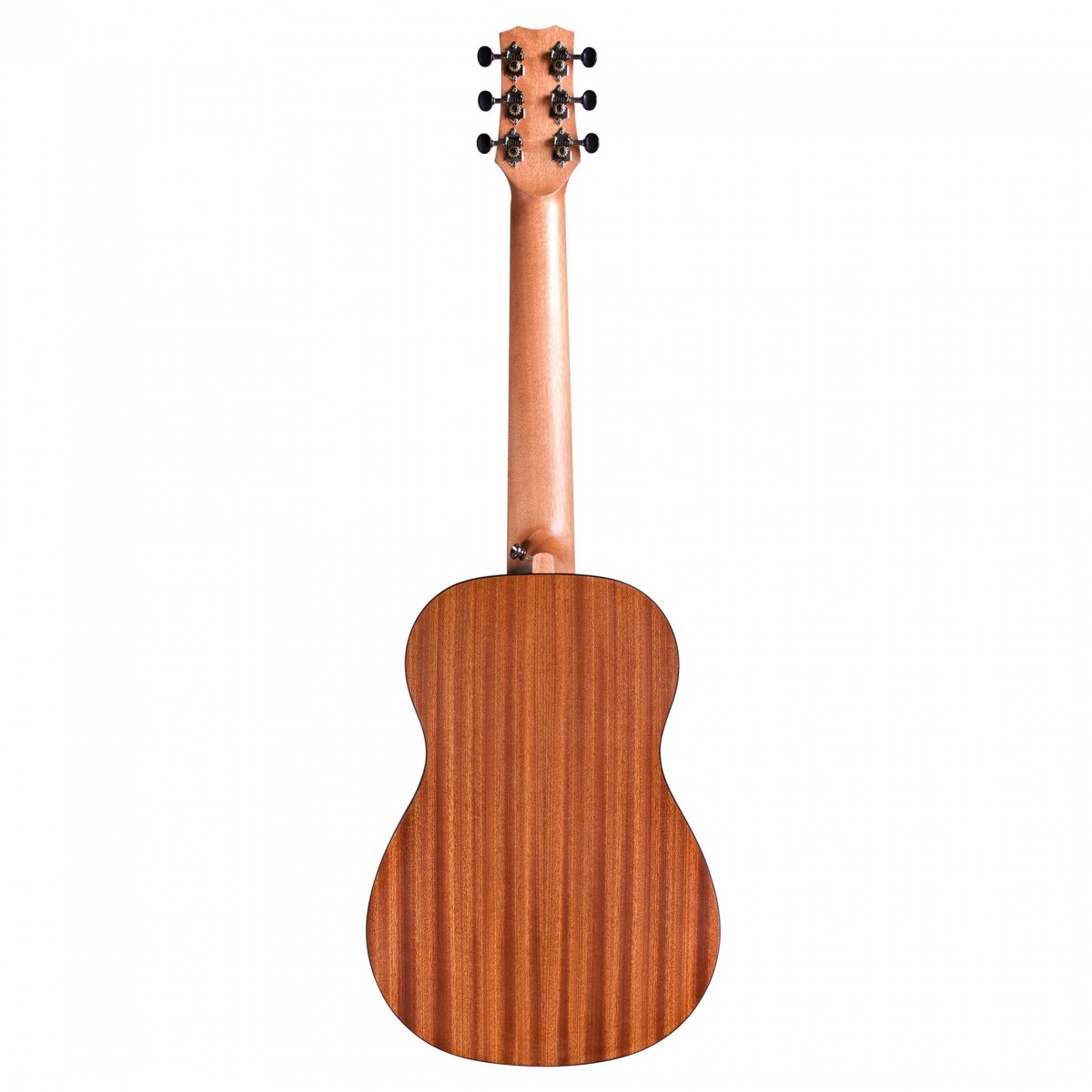 O que diferencia esta guitarra das outras é seu tamanho de viagem combinado com compromissos refinados. Prestando vida na estrada, esta joia de instrumento é leve e convenientemente pequena, para que você possa viajar sem o estresse de carregar equipamentos pesados por aí. Esteja você indo para uma jam com amigos ou embarcando numa turnê, basta pegar e ir embora. E nnum toque de som é sacrificado. Graças a uma profundidade corporal maior do que as guitarras de viagem típicas e um comprimento de escala ligeiramente estendido (580 mm), você pode levar sua música a novos patamares enquanto afina perfeitamente o padrão E. Explore o poder daquele tom de mogno, alcance essas notas agudas sem medo e alcance a grandeza com cada batida.